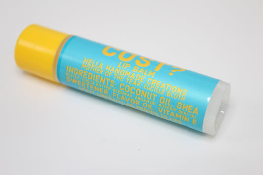 Lip balm - coconut oil, shea butter, cocoa butter, beeswax, argan oil, rosehip seed oil, flavor oil, sweetner, vitamin e