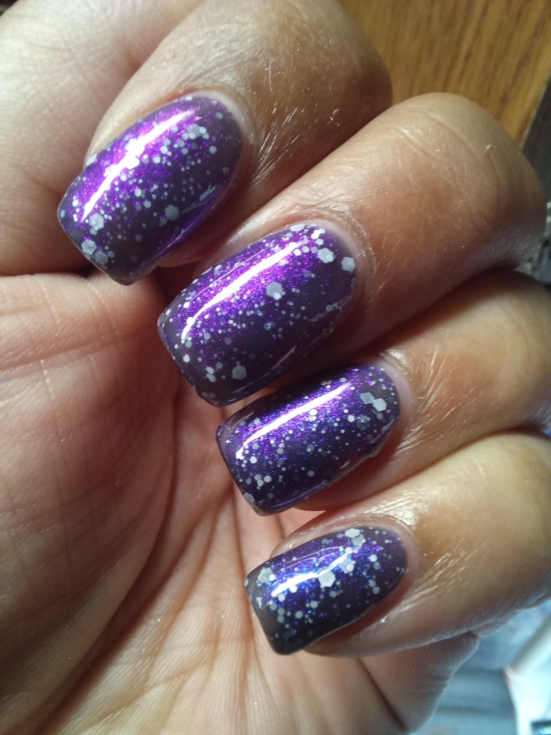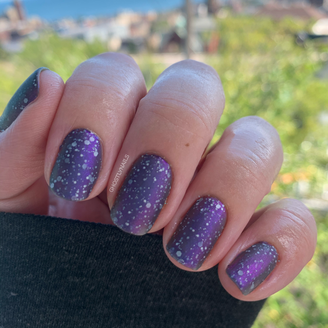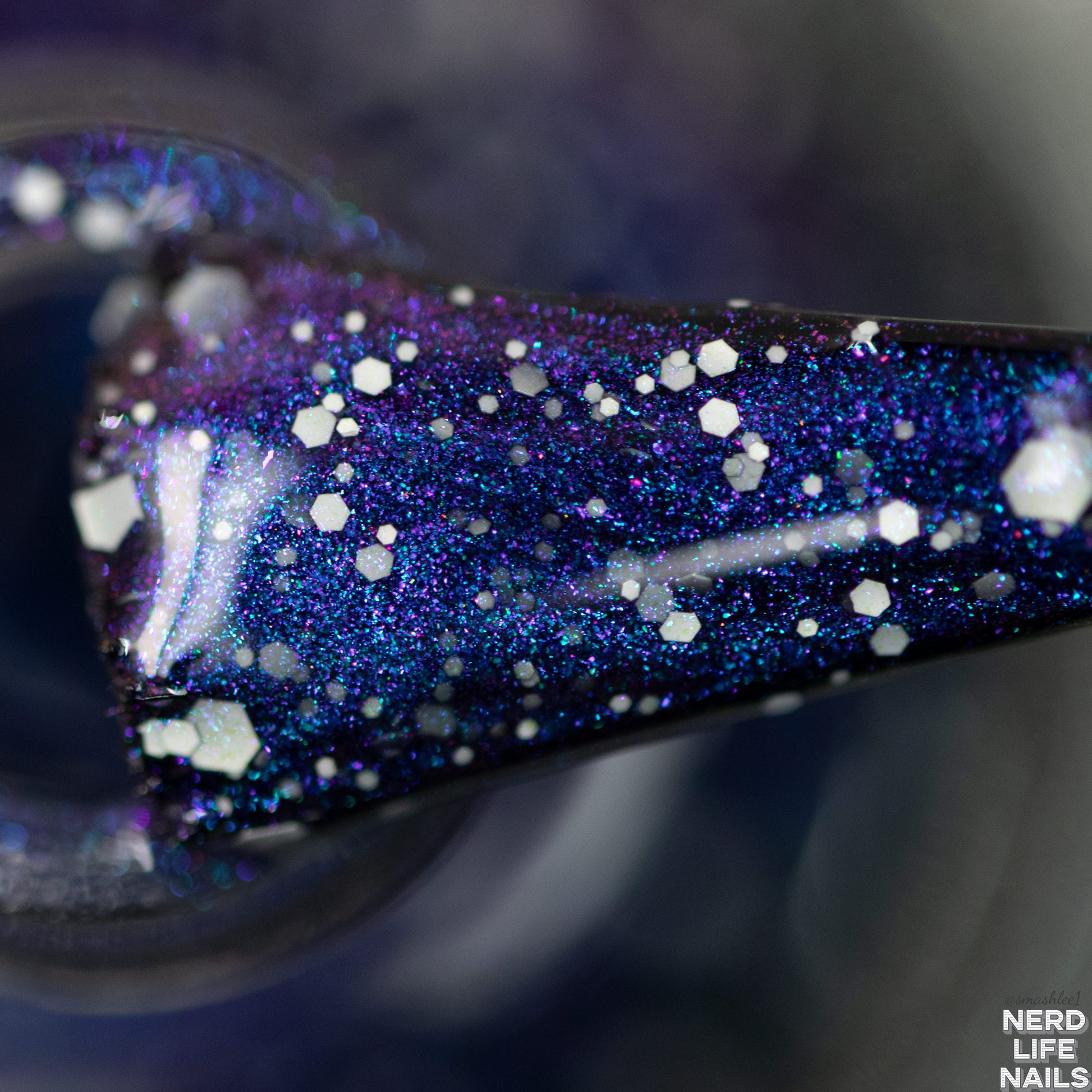 a black jelly swimming with shifting shimmer and white matte hexes