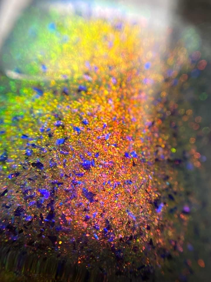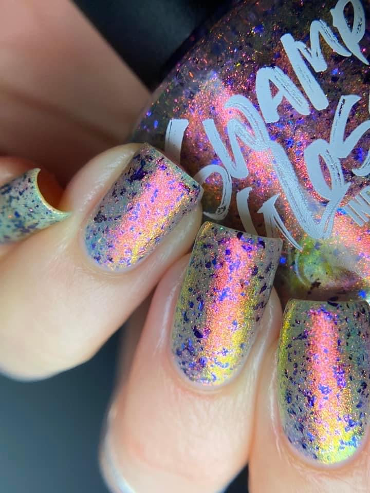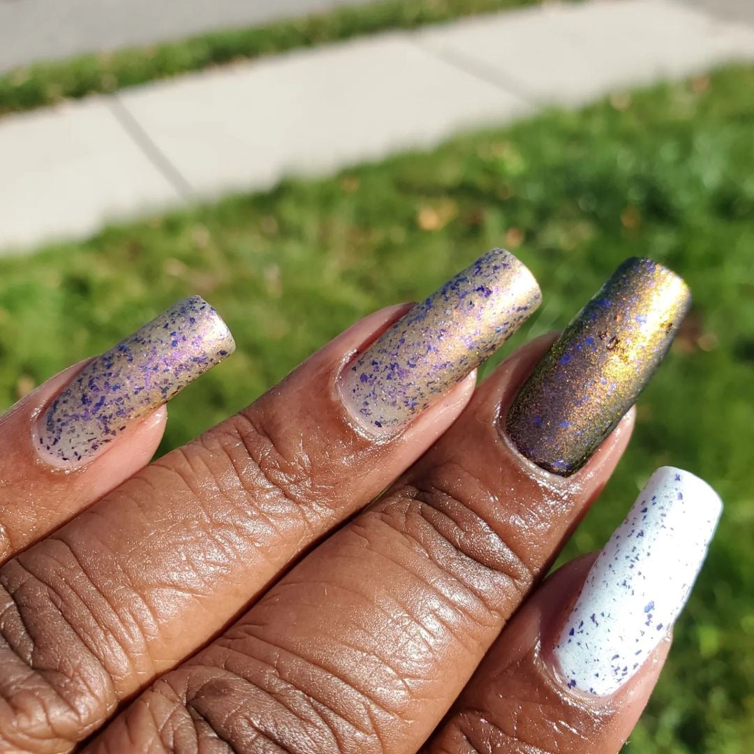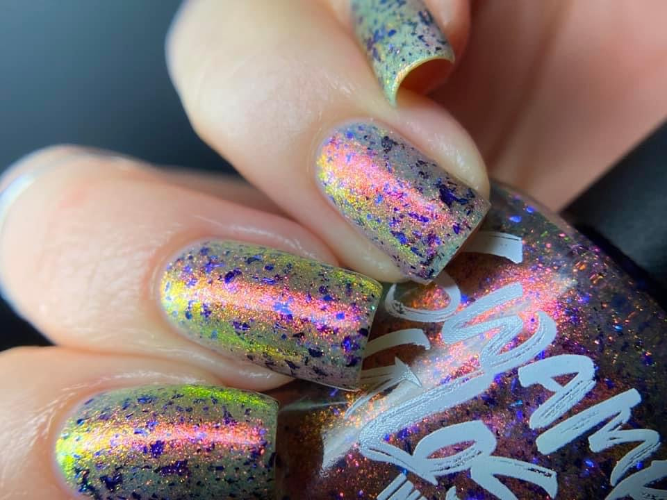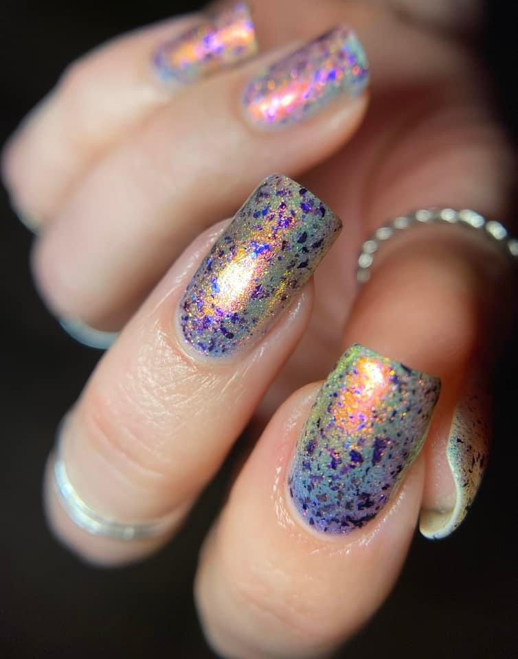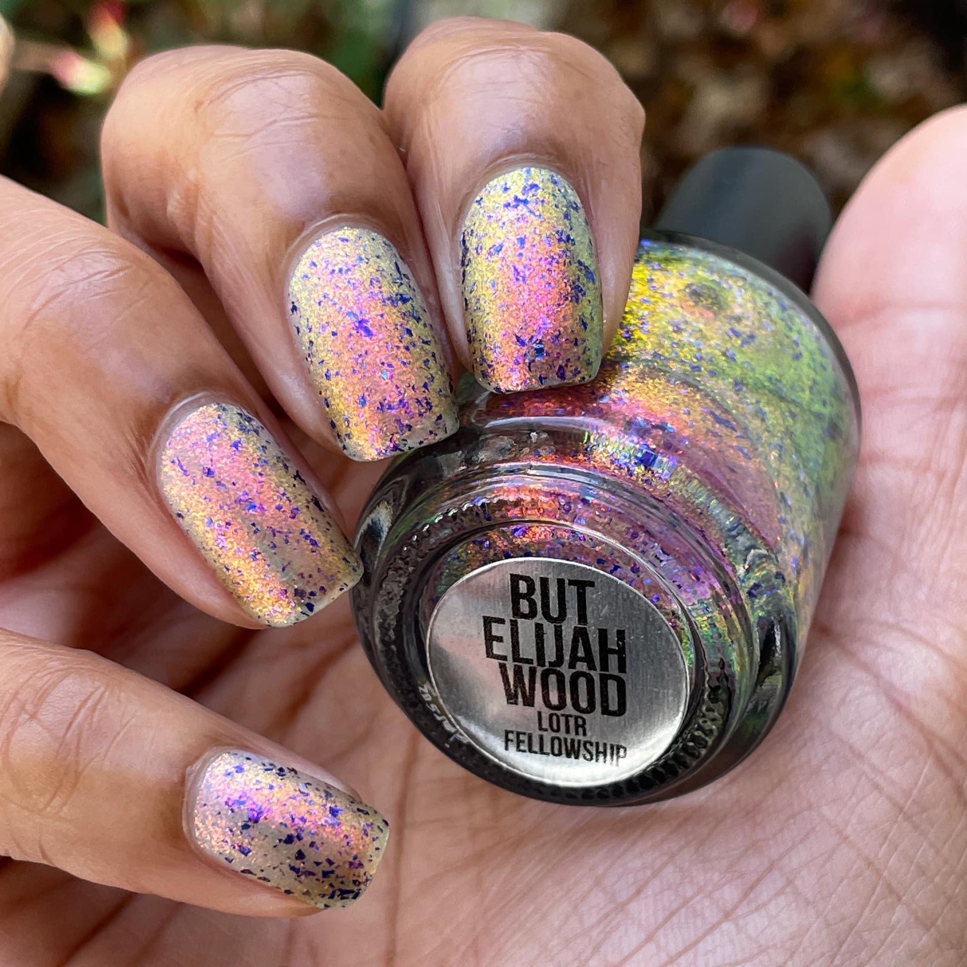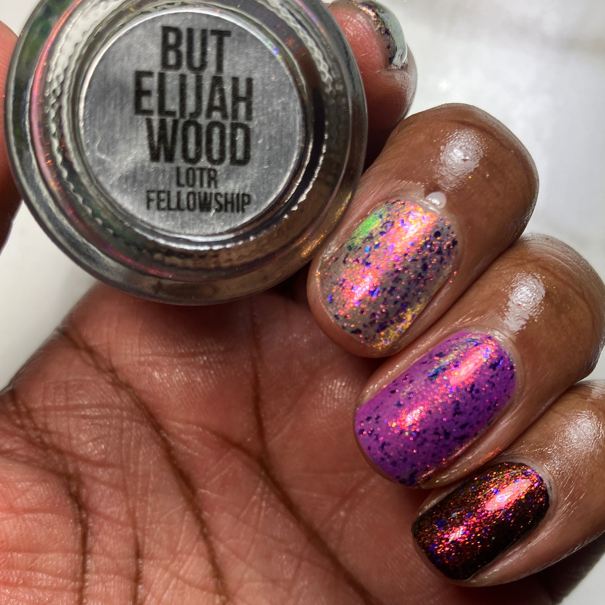 But Elijah Wood - a sheer base stacked with metallic shifting shimmer and violet metallic flakes