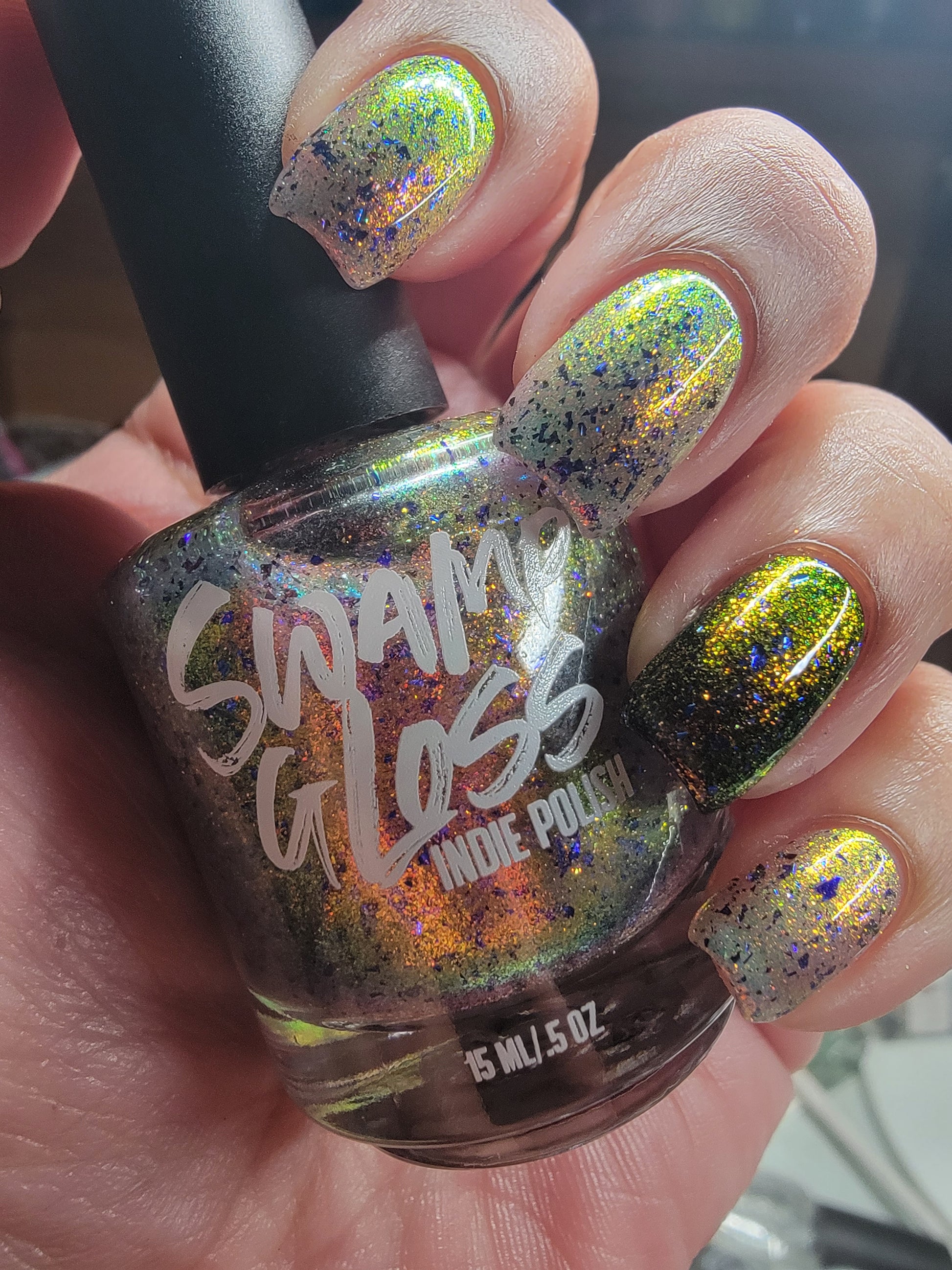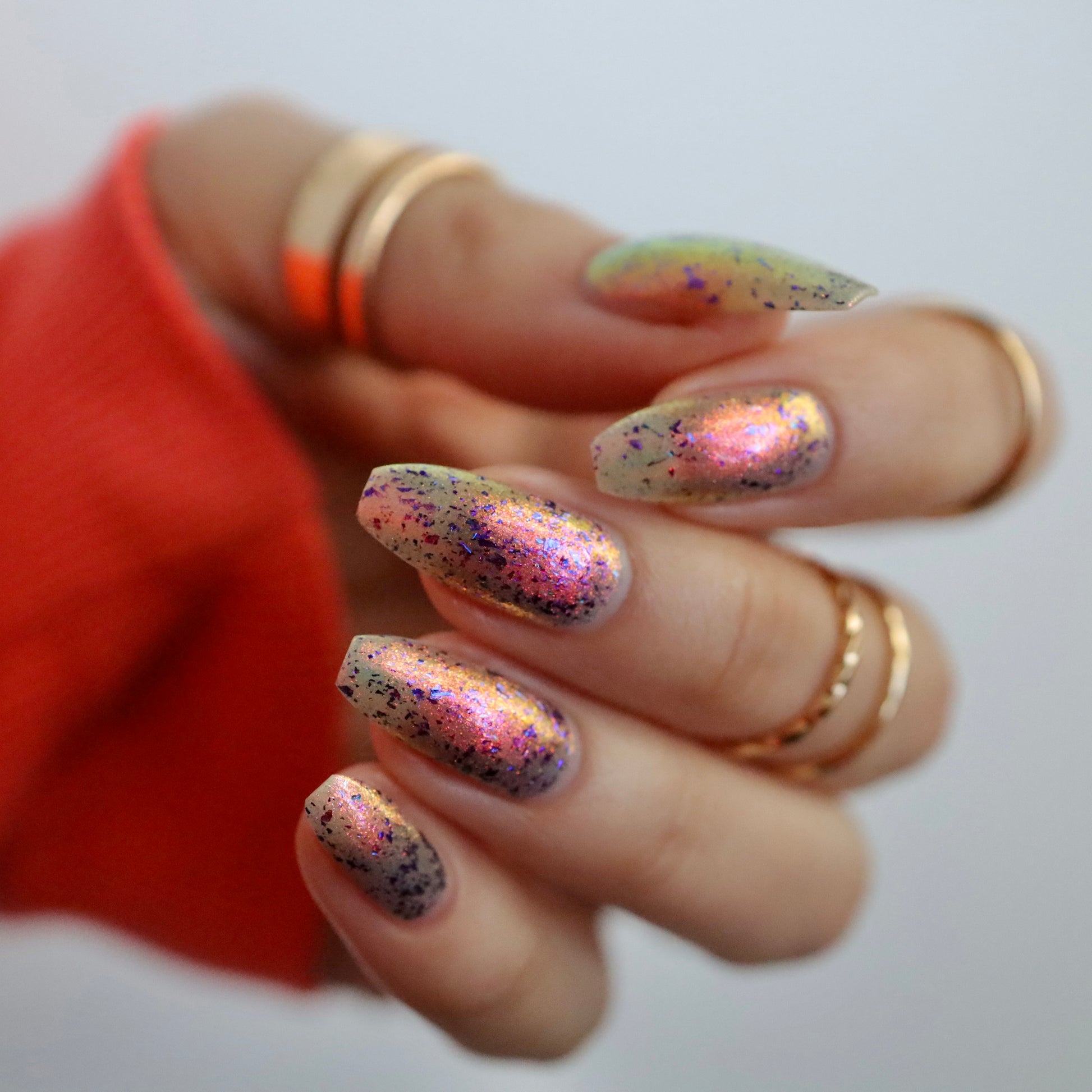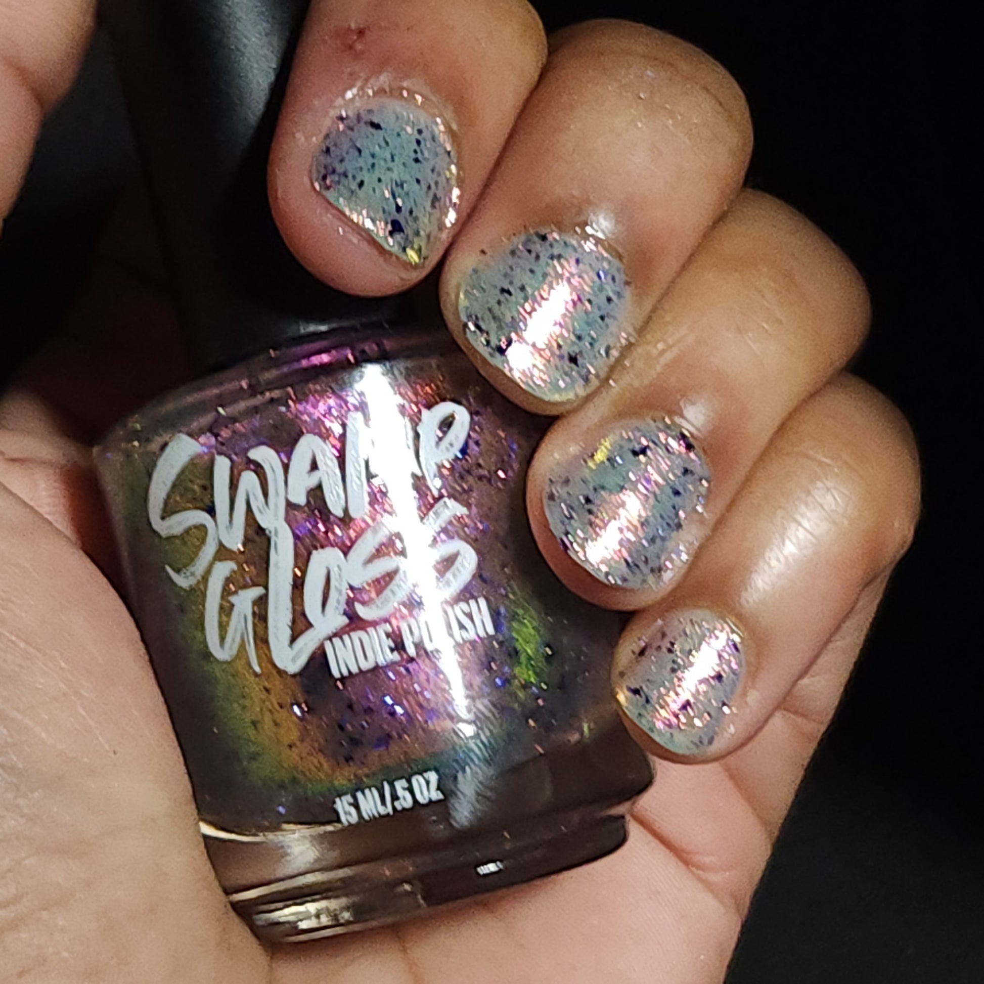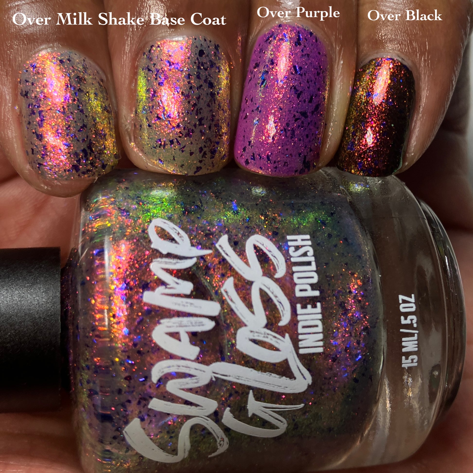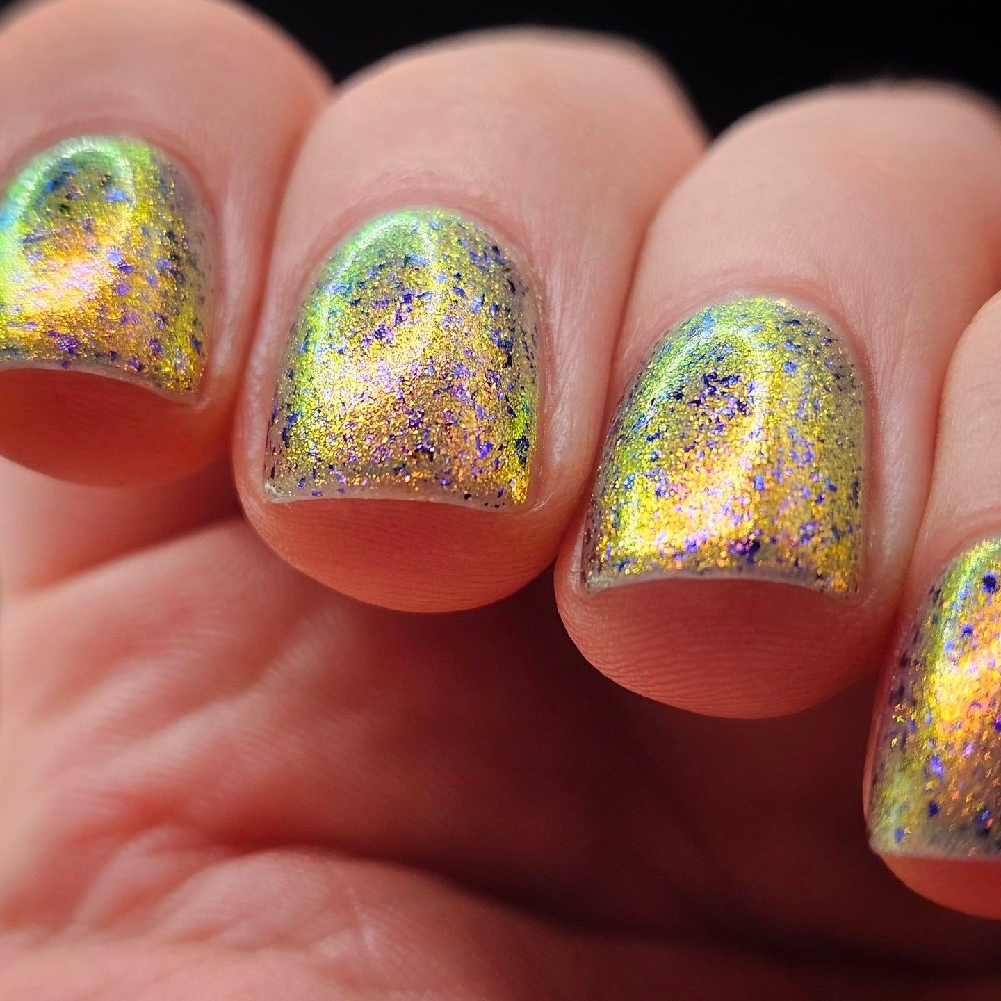 But Elijah Wood - a sheer base stacked with metallic shifting shimmer and violet metallic flakes