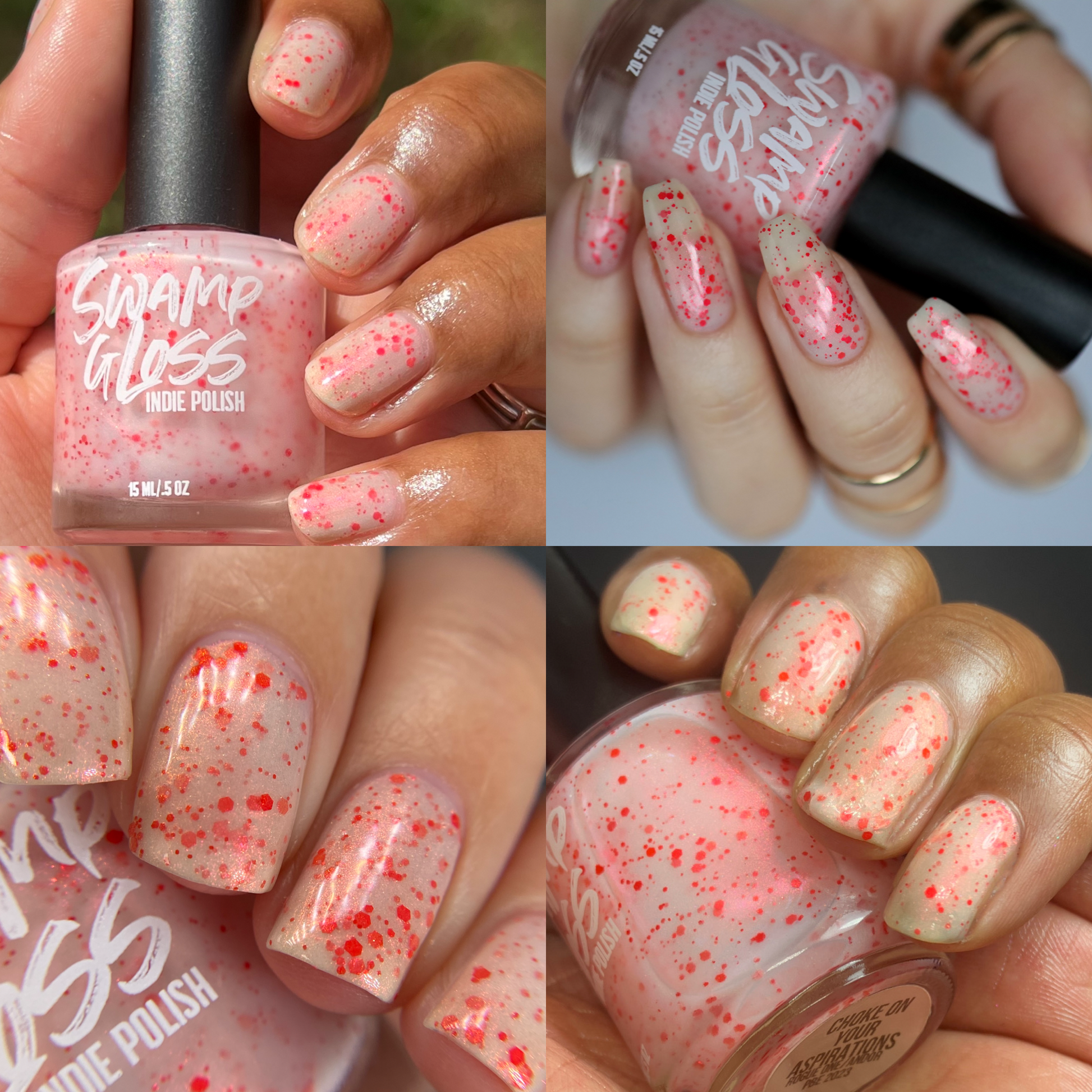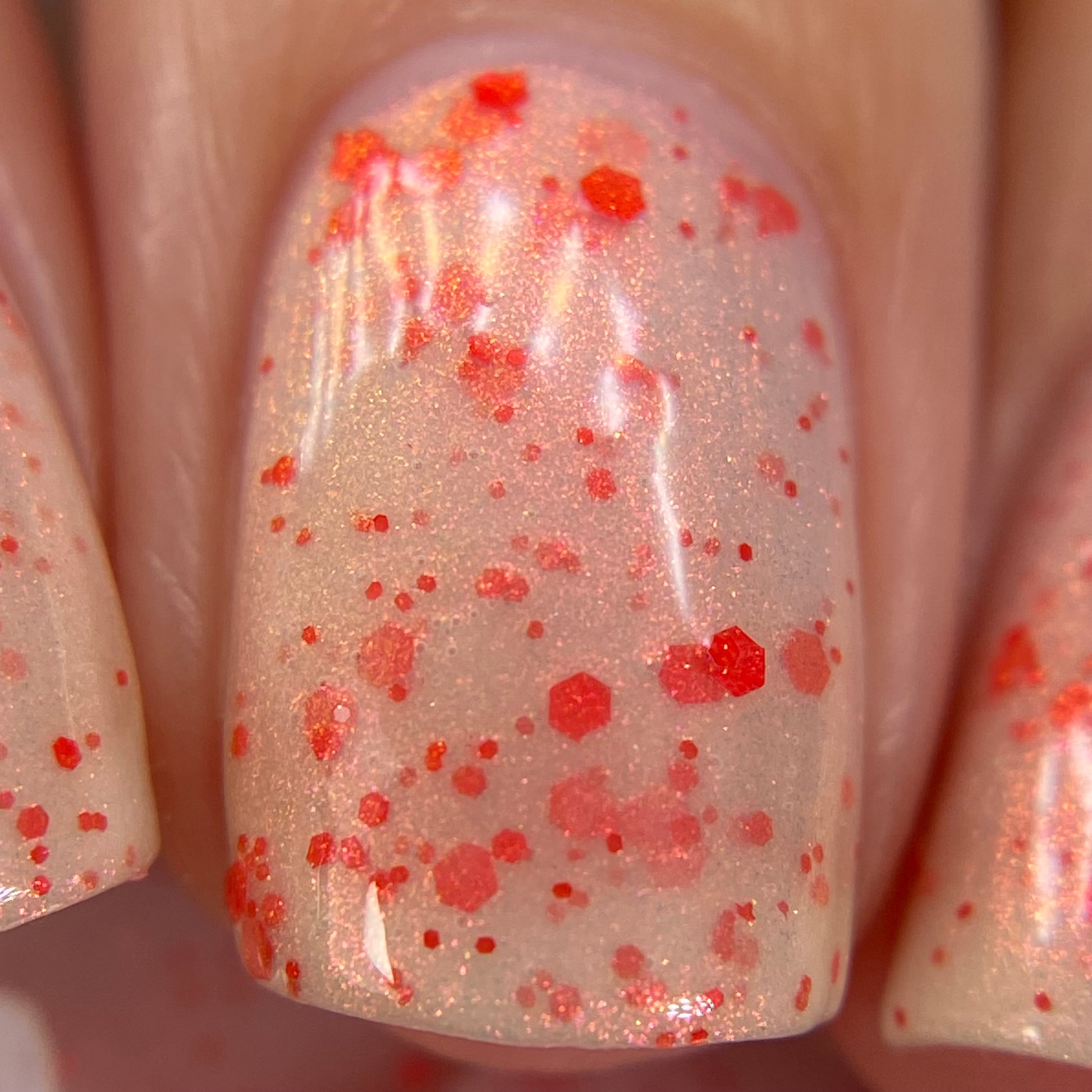 Choke on your aspirations - a lightened jelly packed with red/violet/orange shifting shimmer and matte red hexes