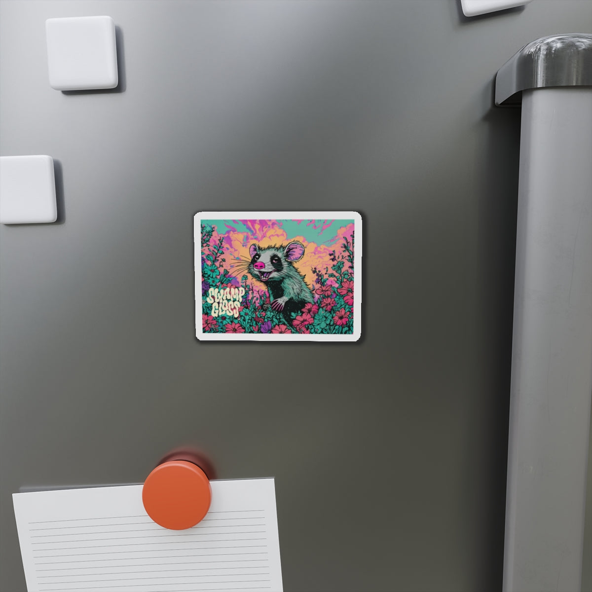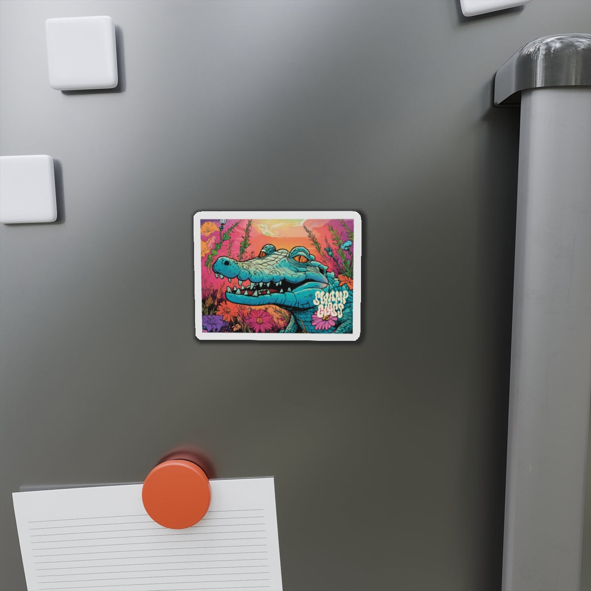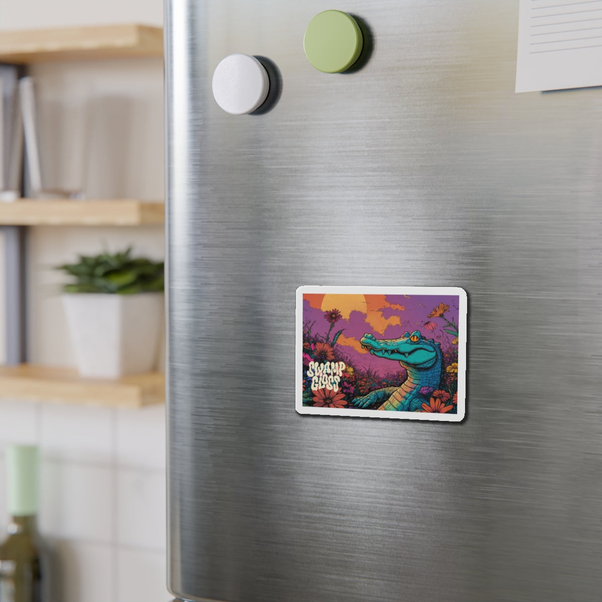 3x2 magnet featuring swamp critters near and dear while they fly the kite