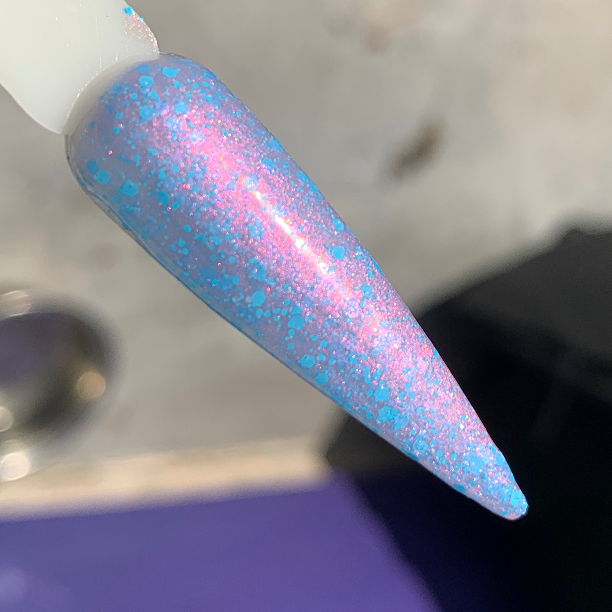 No, I’ve gone hard my darling - A clear to grey solar base, absolutely loaded with shifting shimmer and blue hexes.
