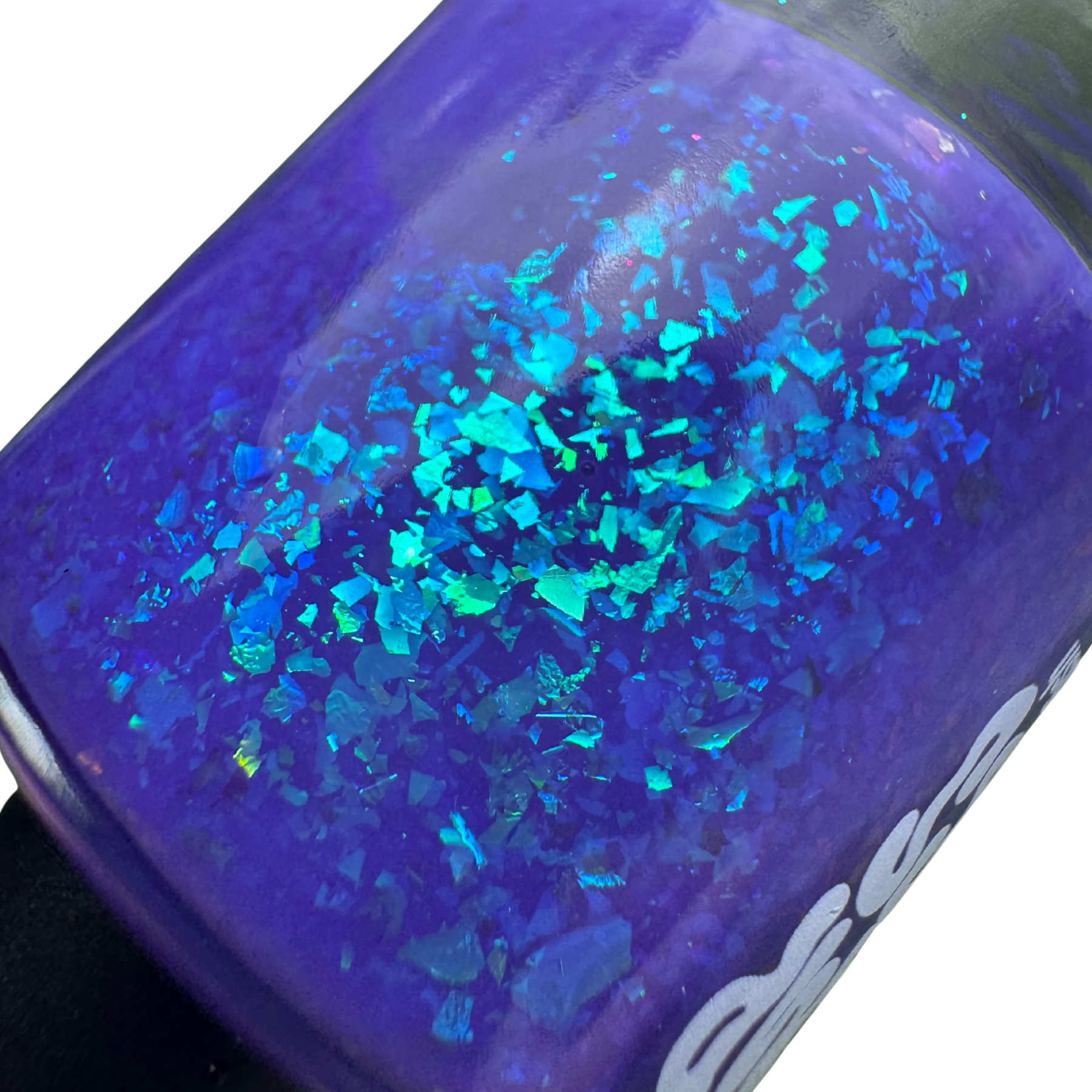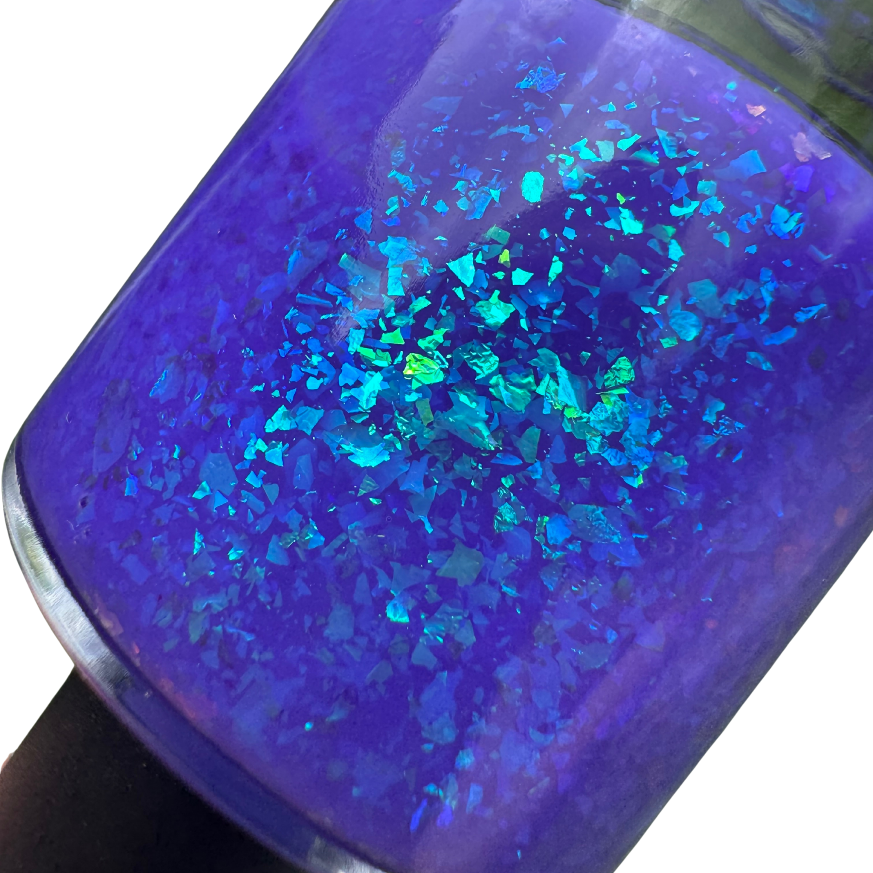 A violet base with large blue iridescent shifting flakes