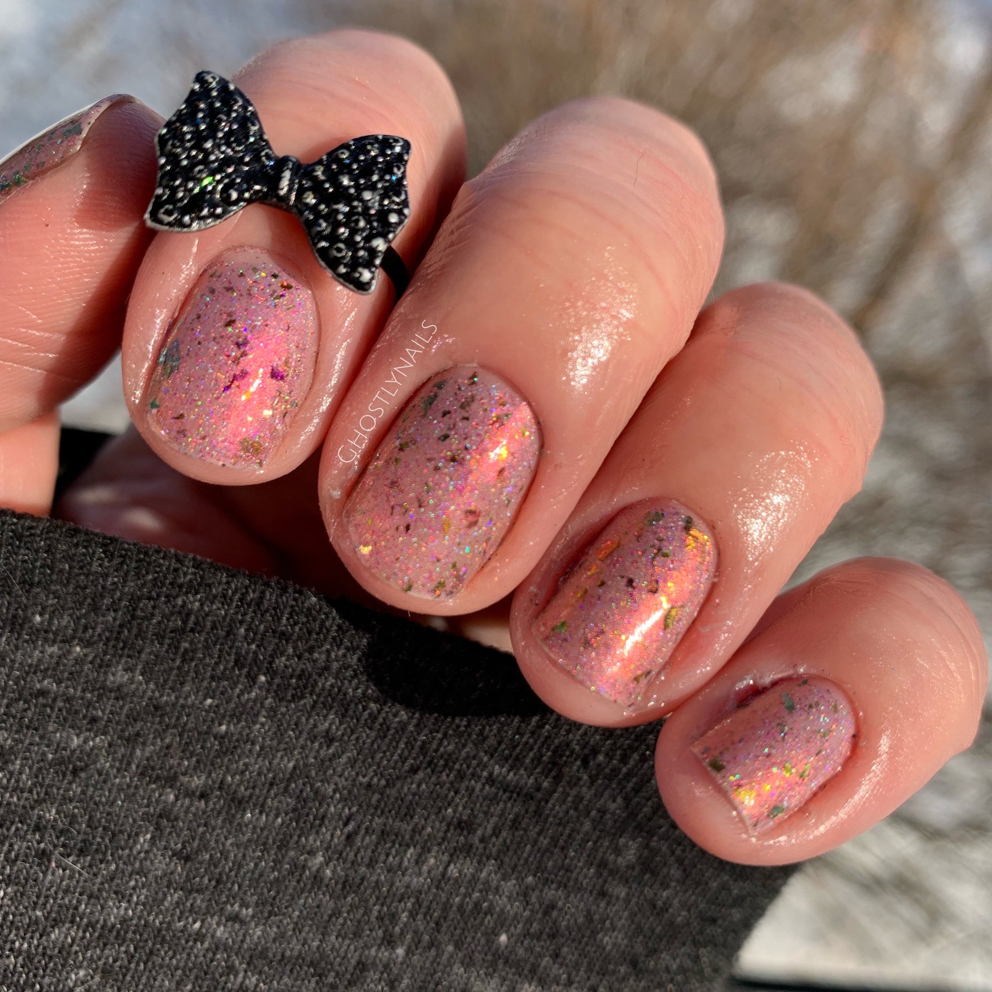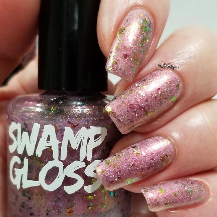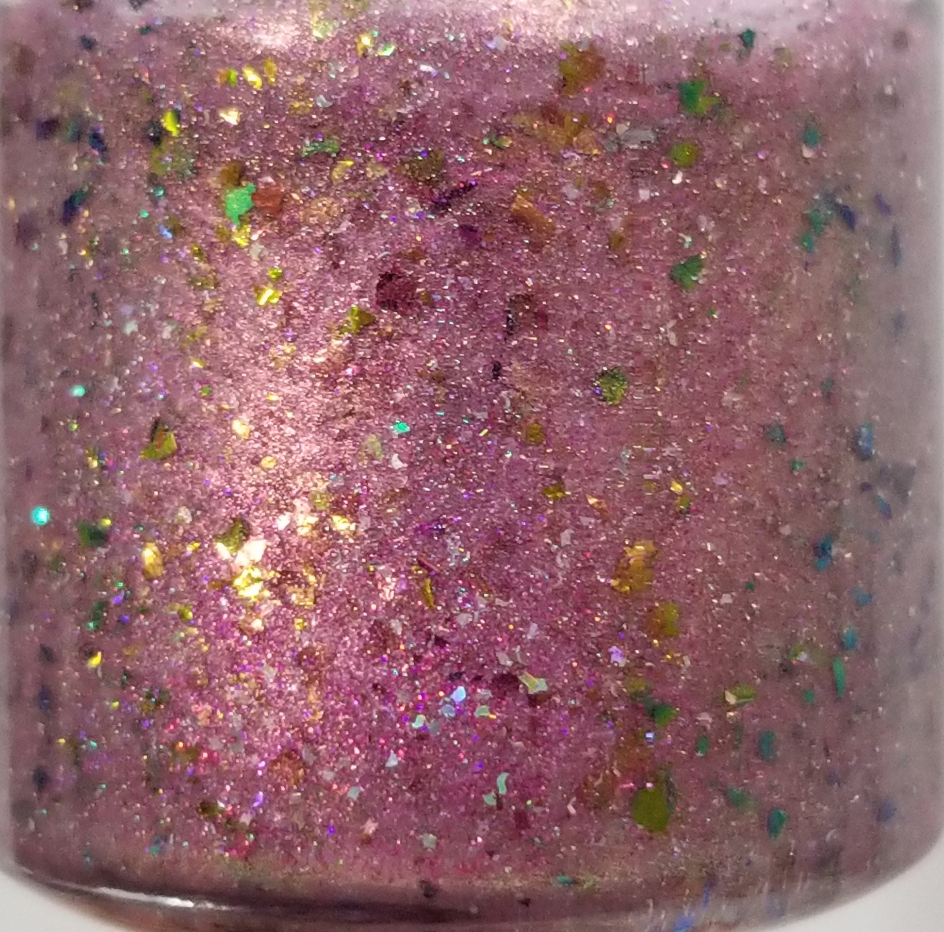 Poor Judy, always looked over and expected to tow the line. Well, she's a real woman doing real woman things. This polish was inspired by the poor, put upon, yet exceptionally spoiled, Judy Gemstone. A sheer shimmer polish that flashes pink to gold to green, with shimmer matching ultra chameleon mega flakes and scattered holo micro glittrs.