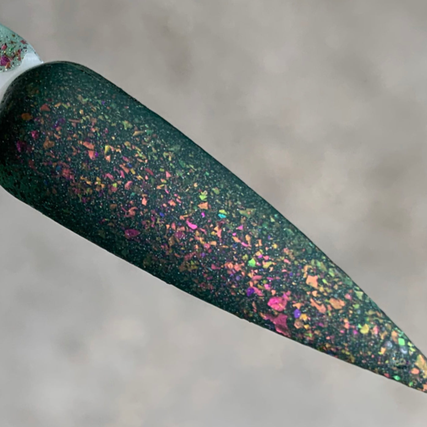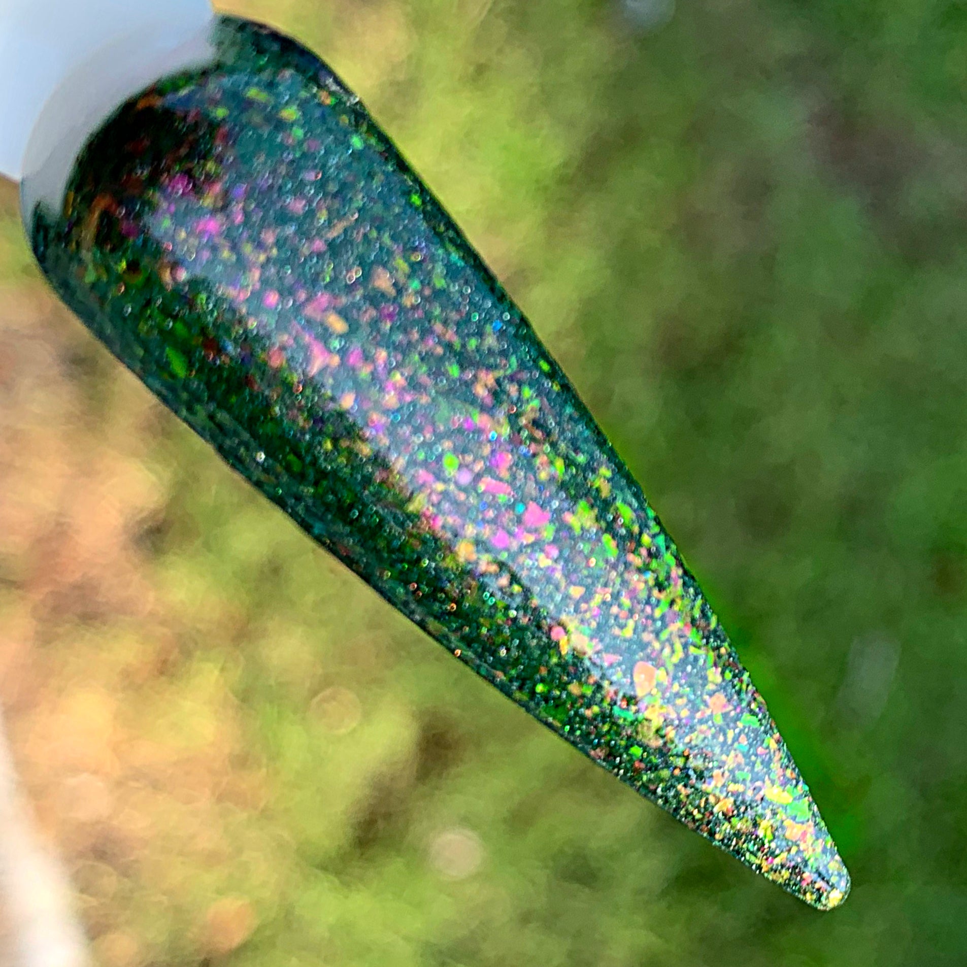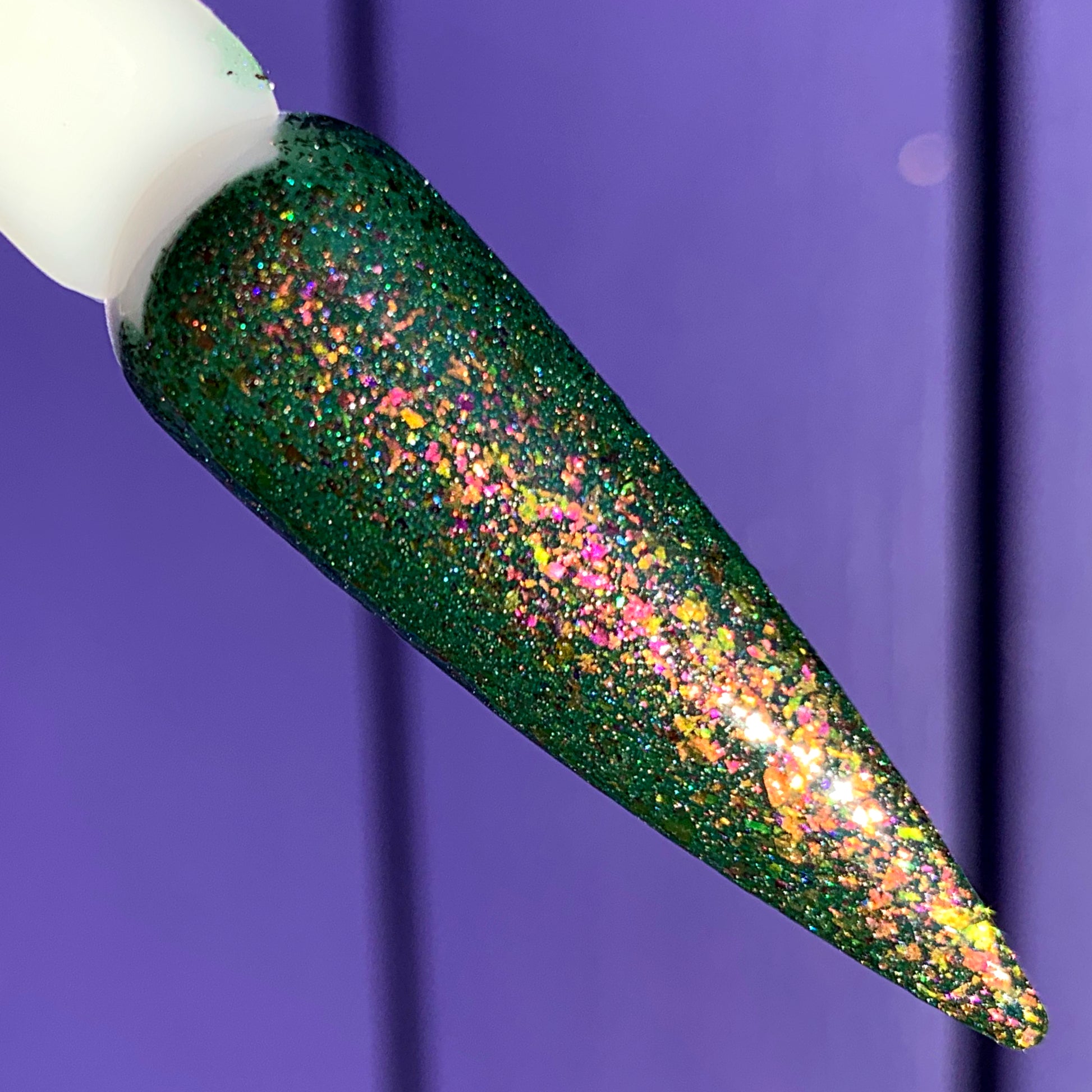 A rich forest green, stacked with metallic shifting flakes and green gloW