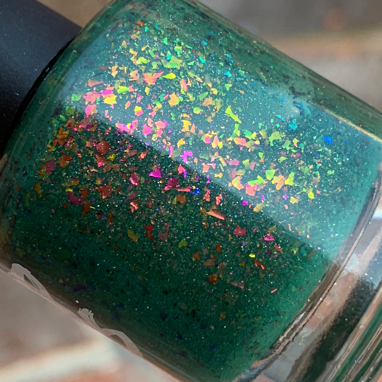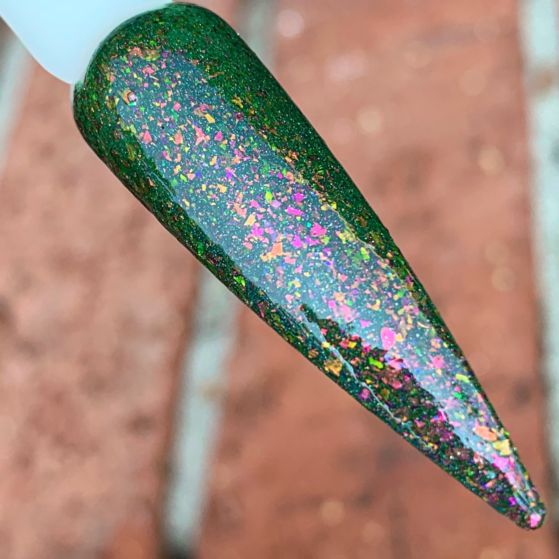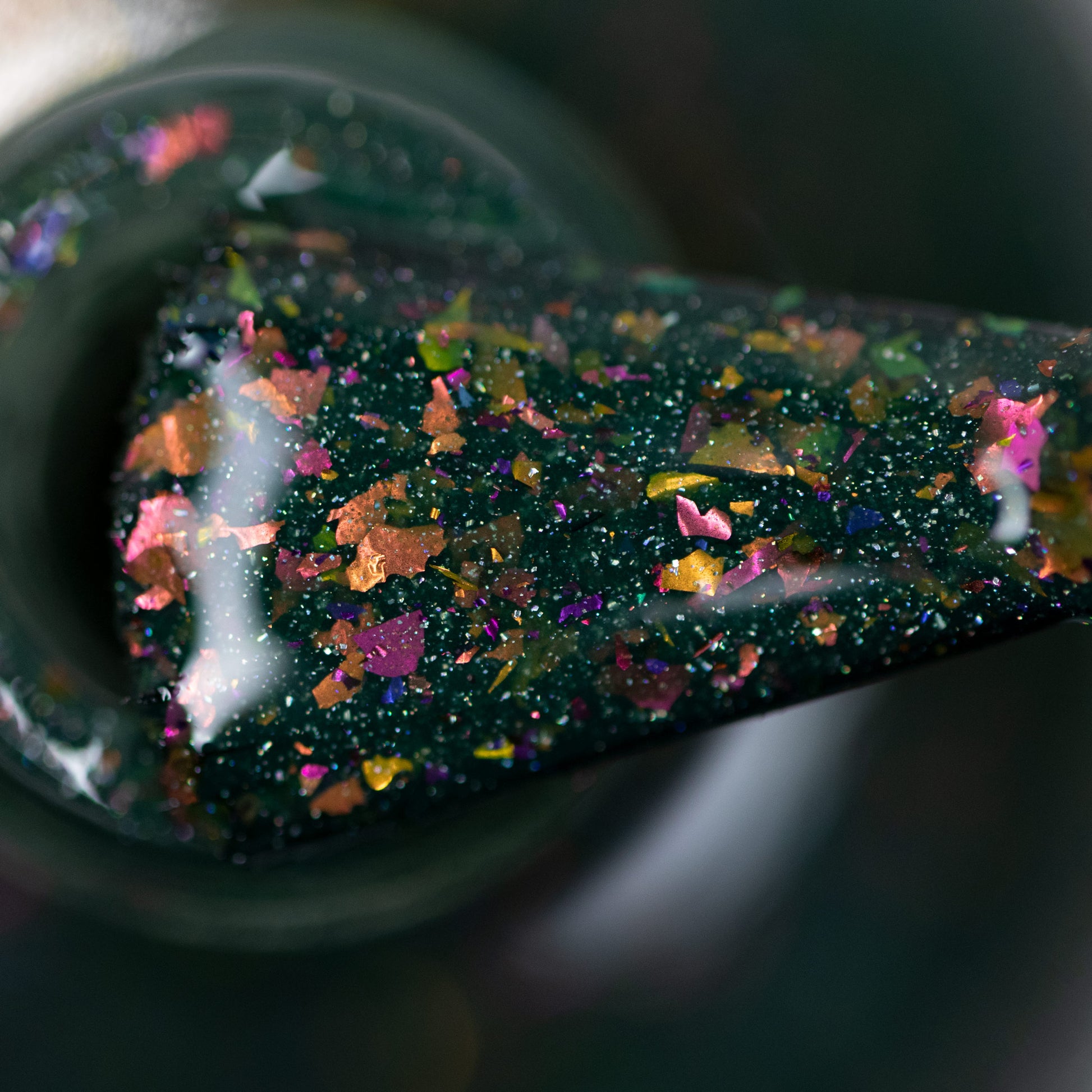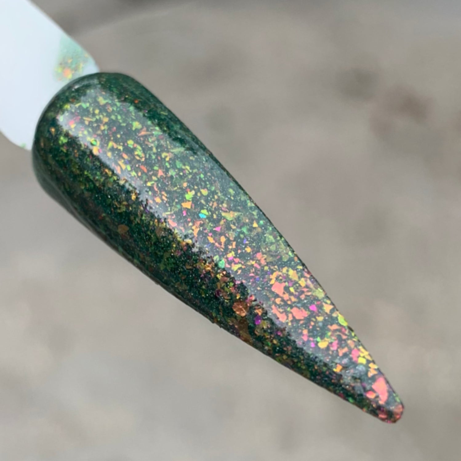 A rich forest green, stacked with metallic shifting flakes and green gloW