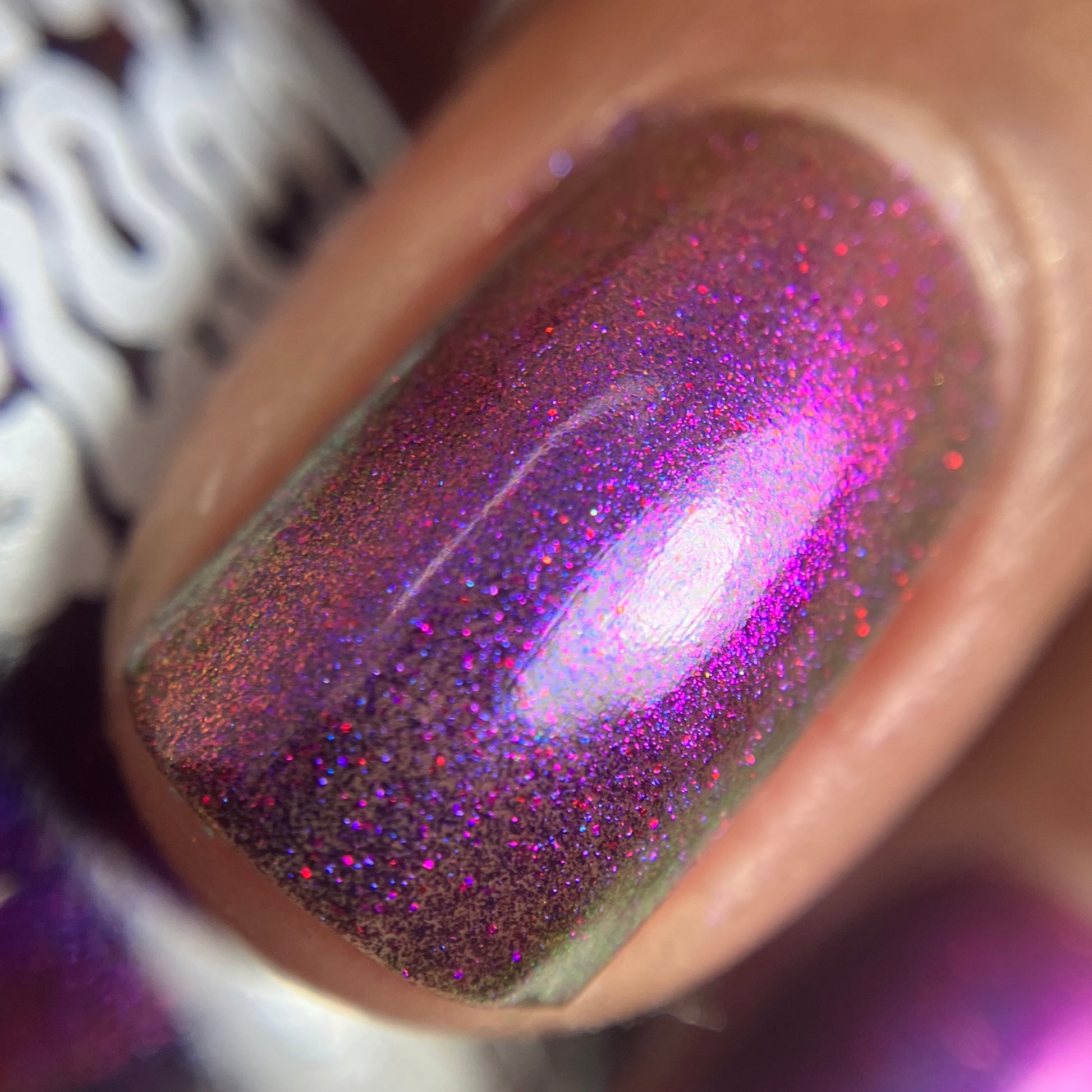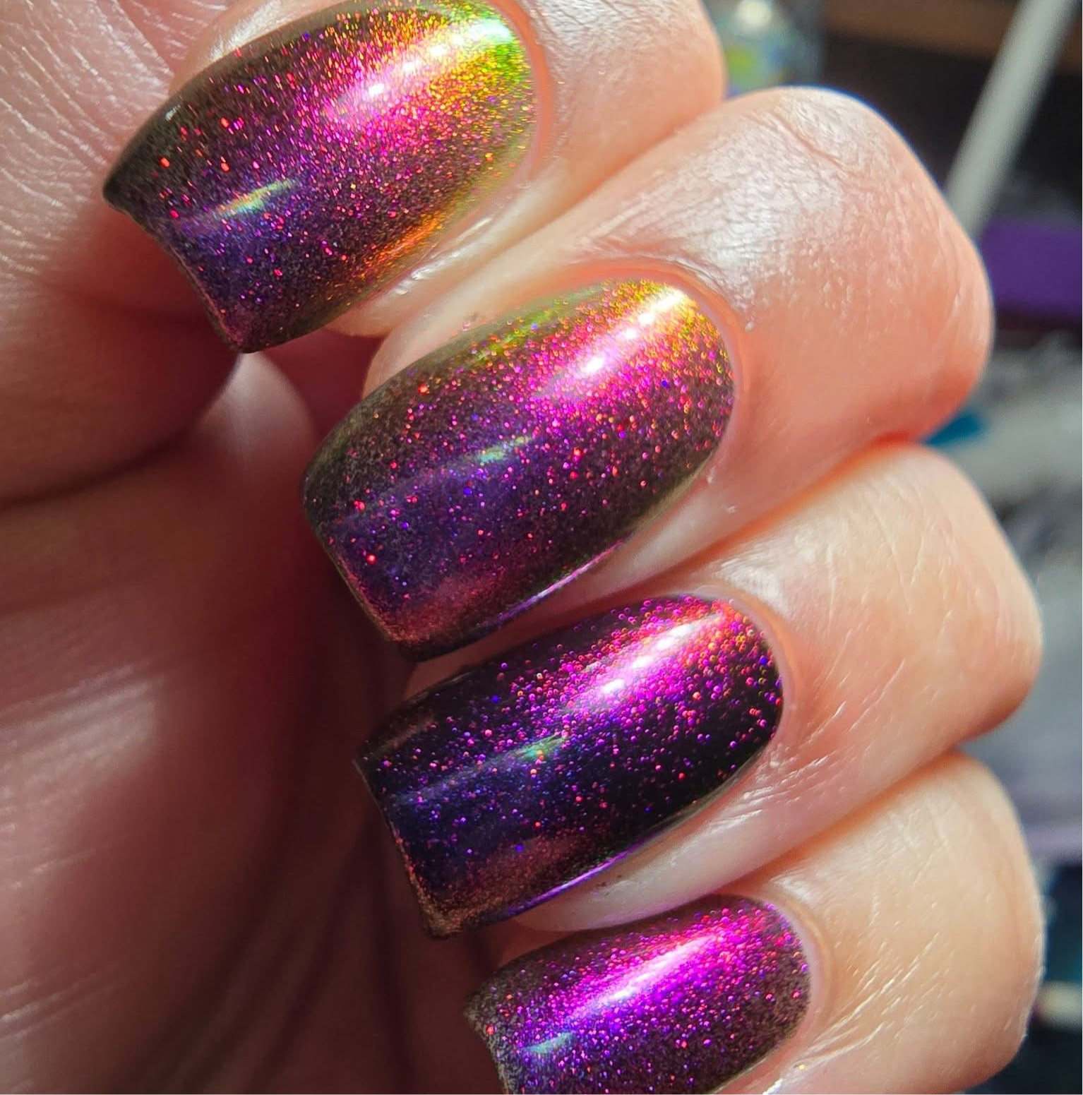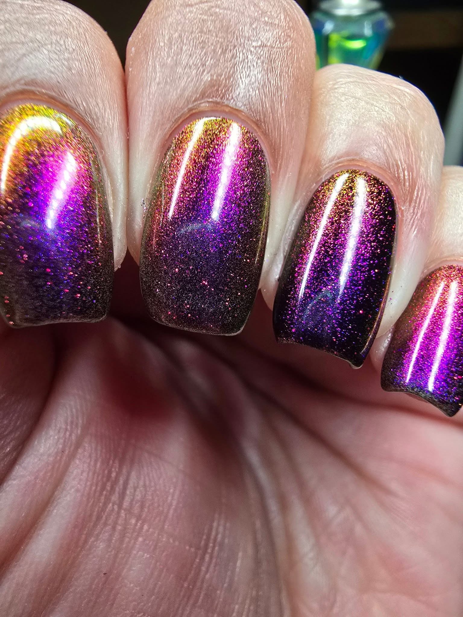 It’s a blast - multichrome shifting blue/purple/pink  and red galaxy glitter