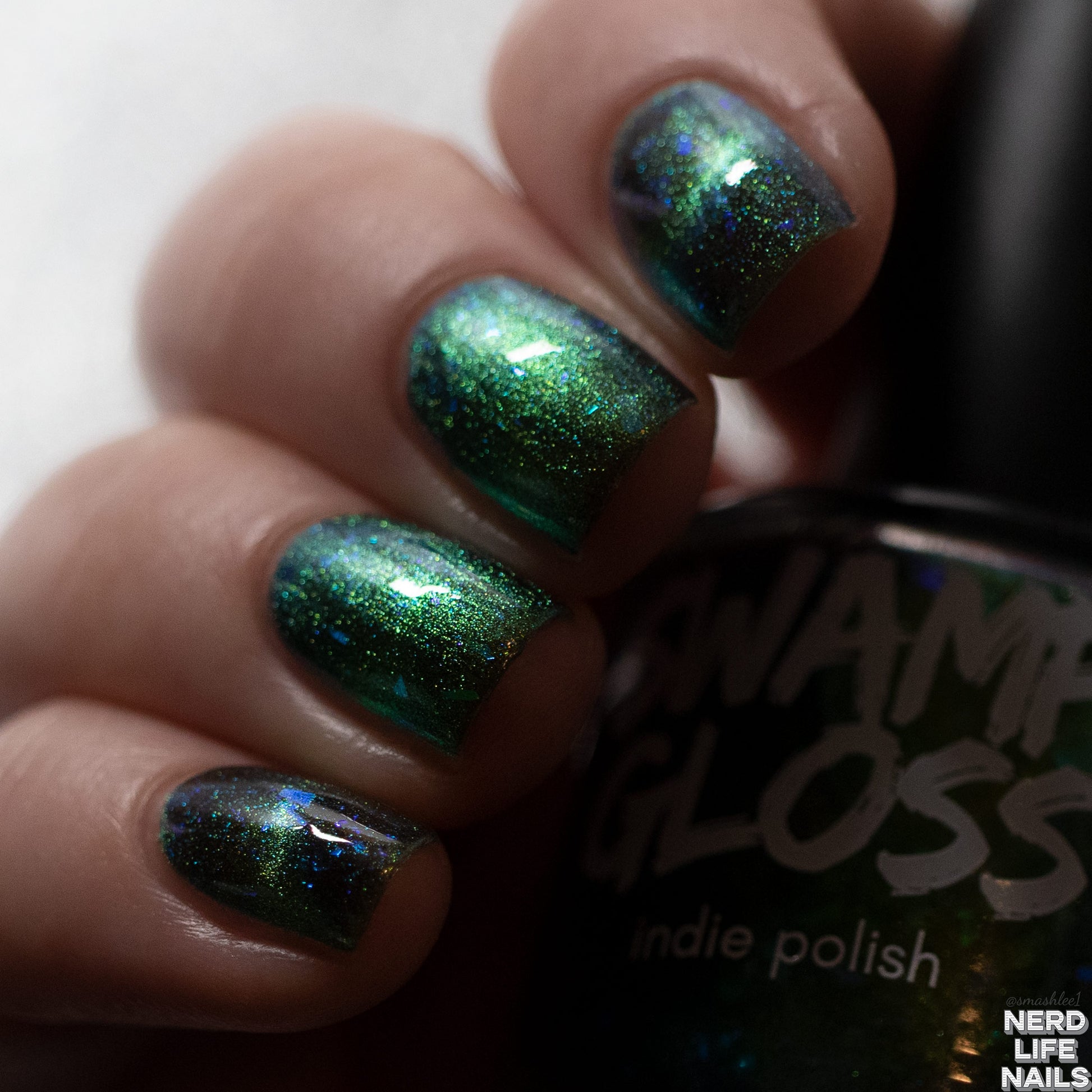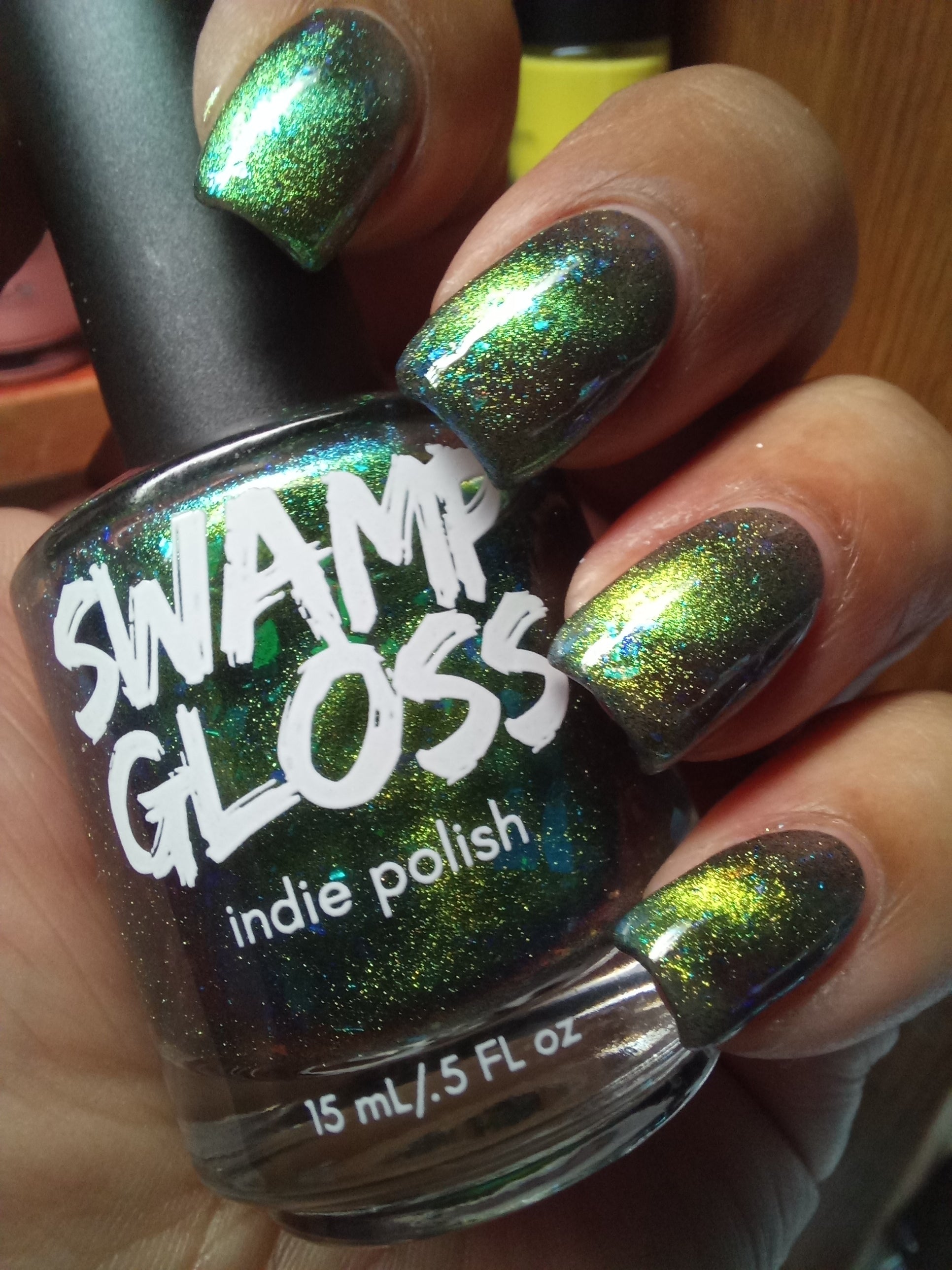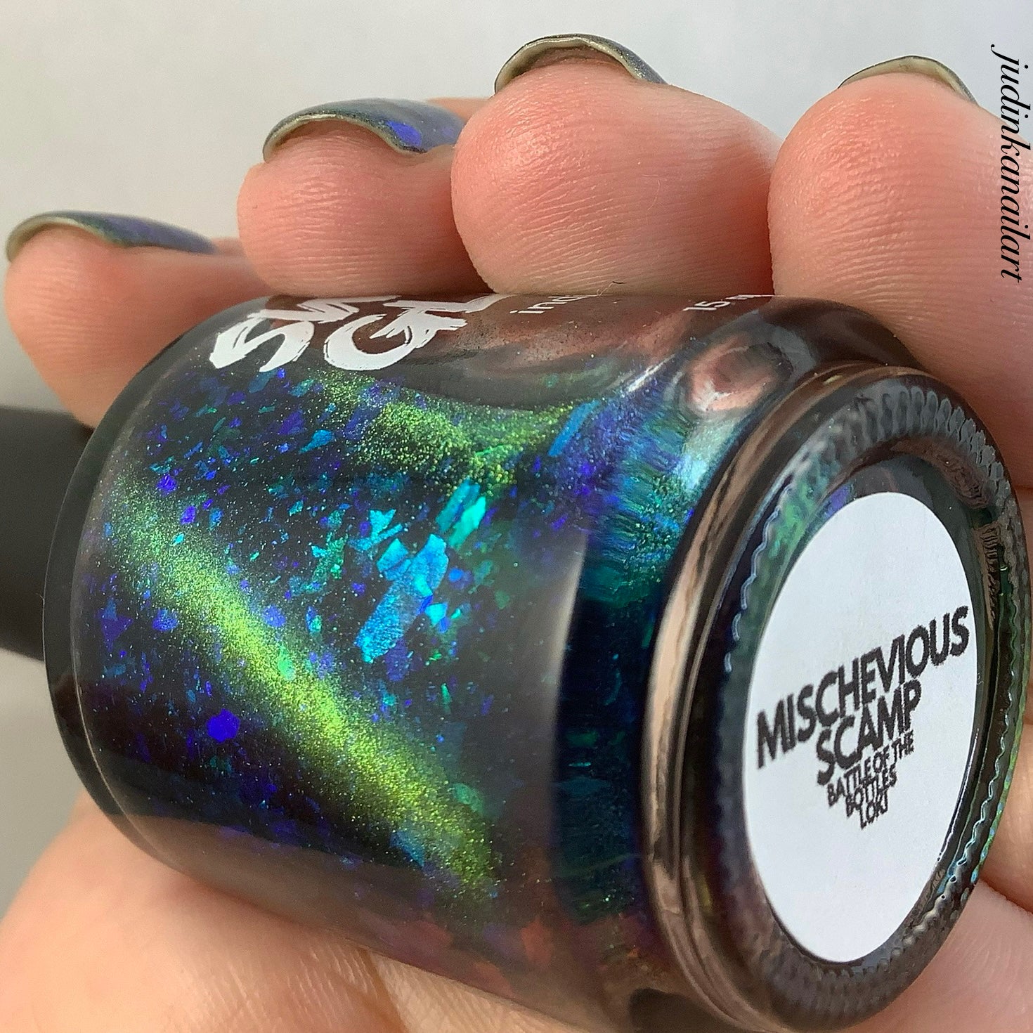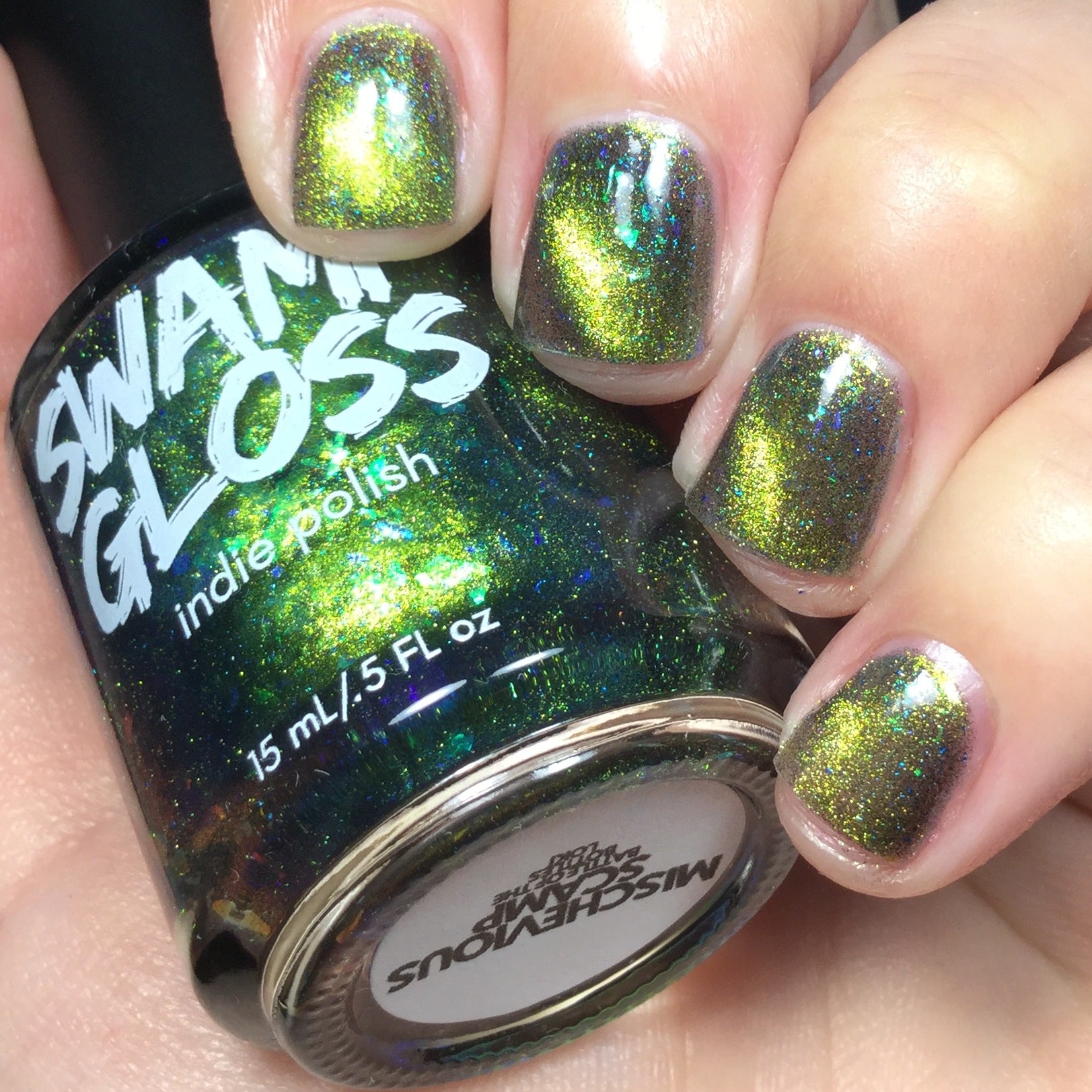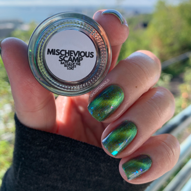 a multichrome magnetic, shifts of gold green, emerald and blue with metallic micro flakes and iridescent colorshifting flake
