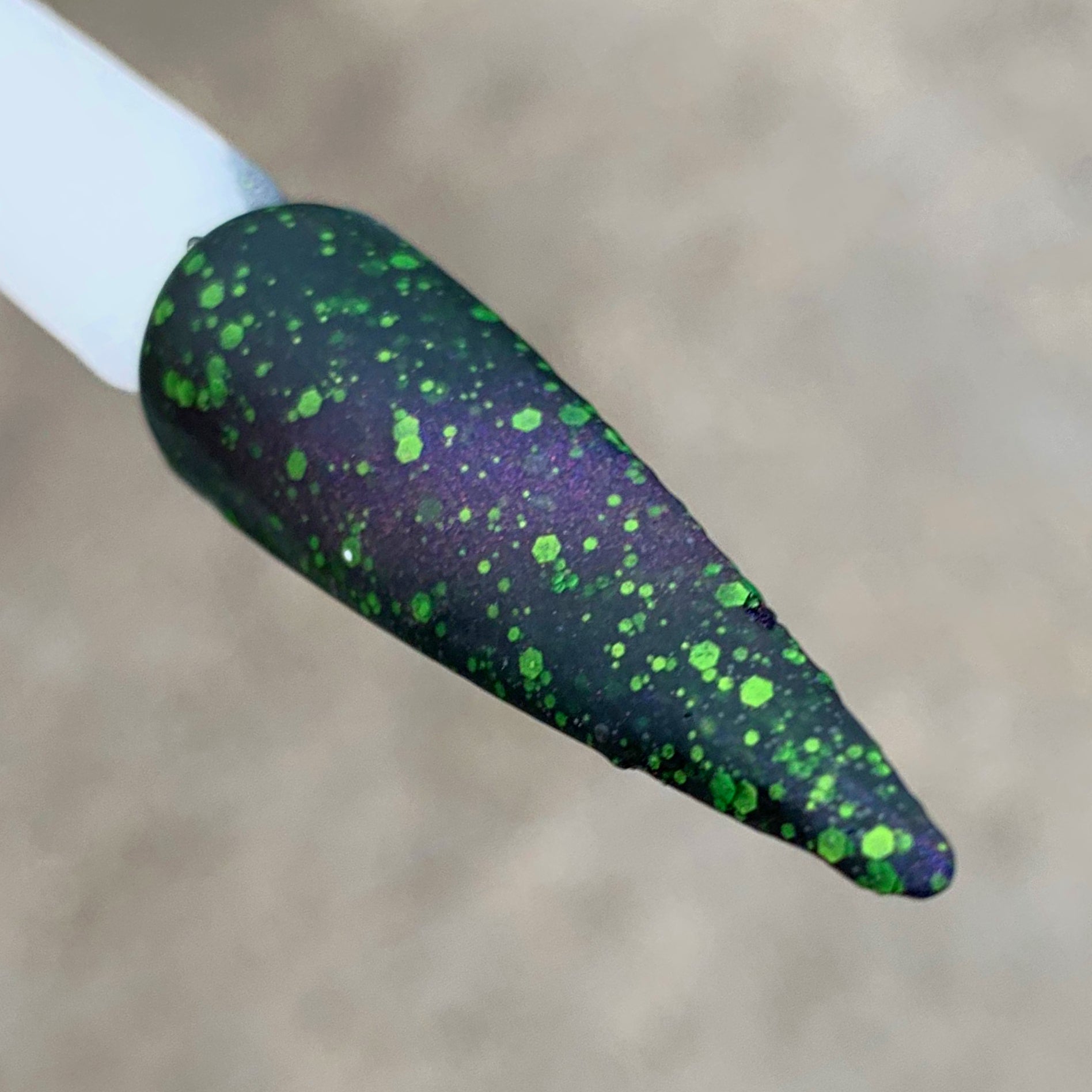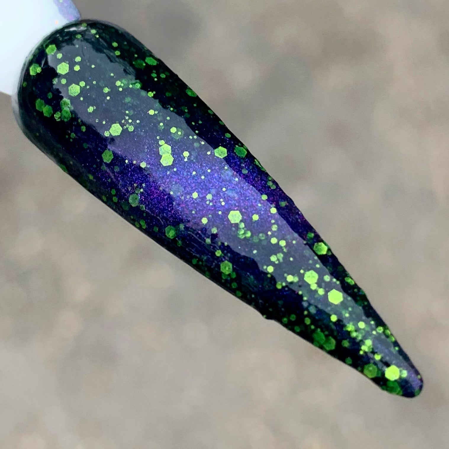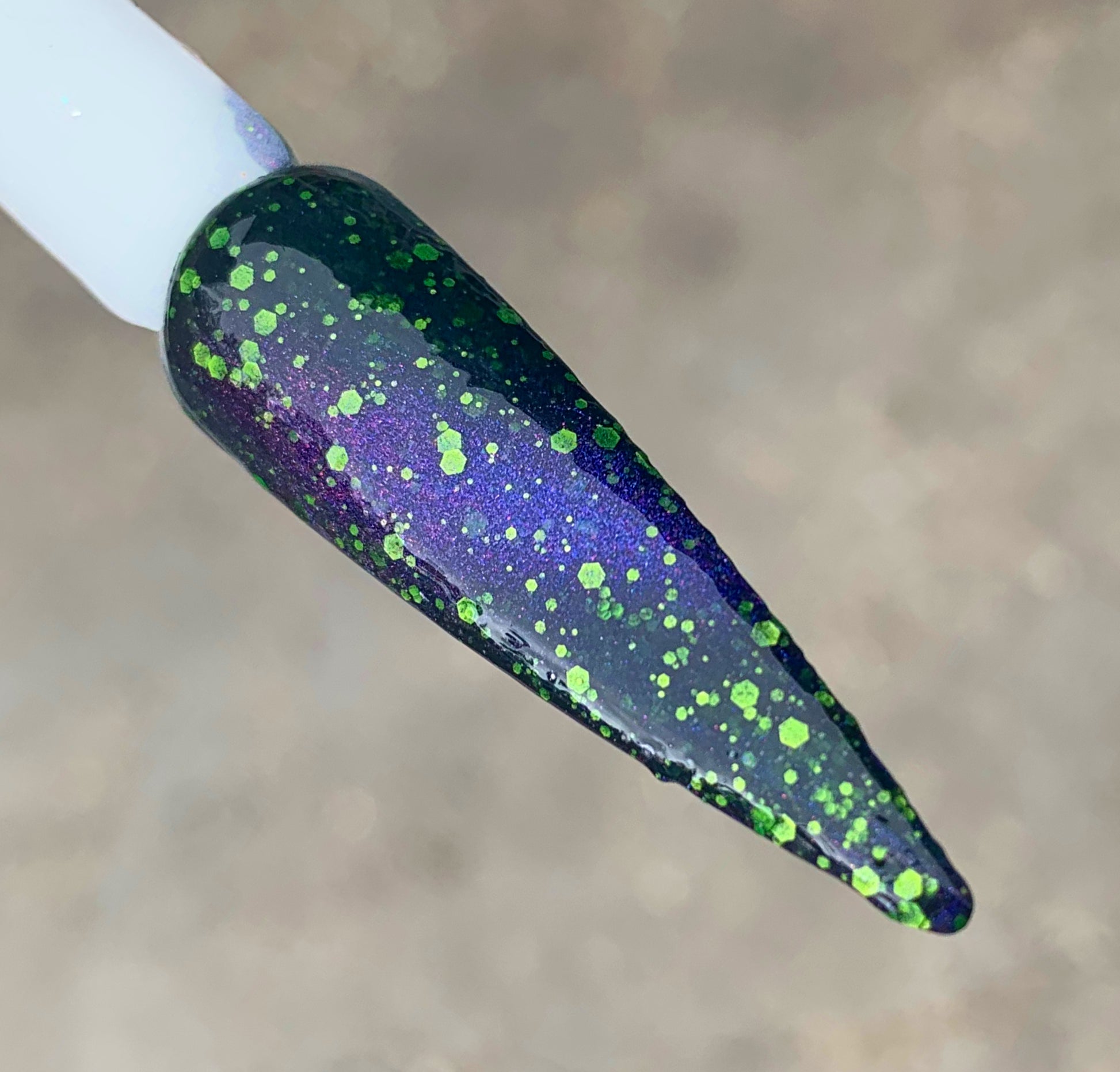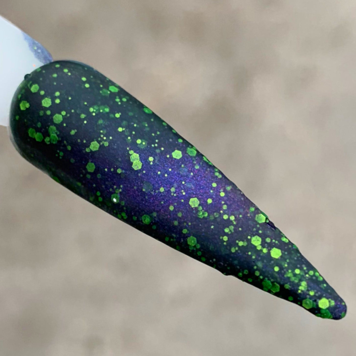 A purple to pink magnetic chameleon, with neon green hexes and a blue glow