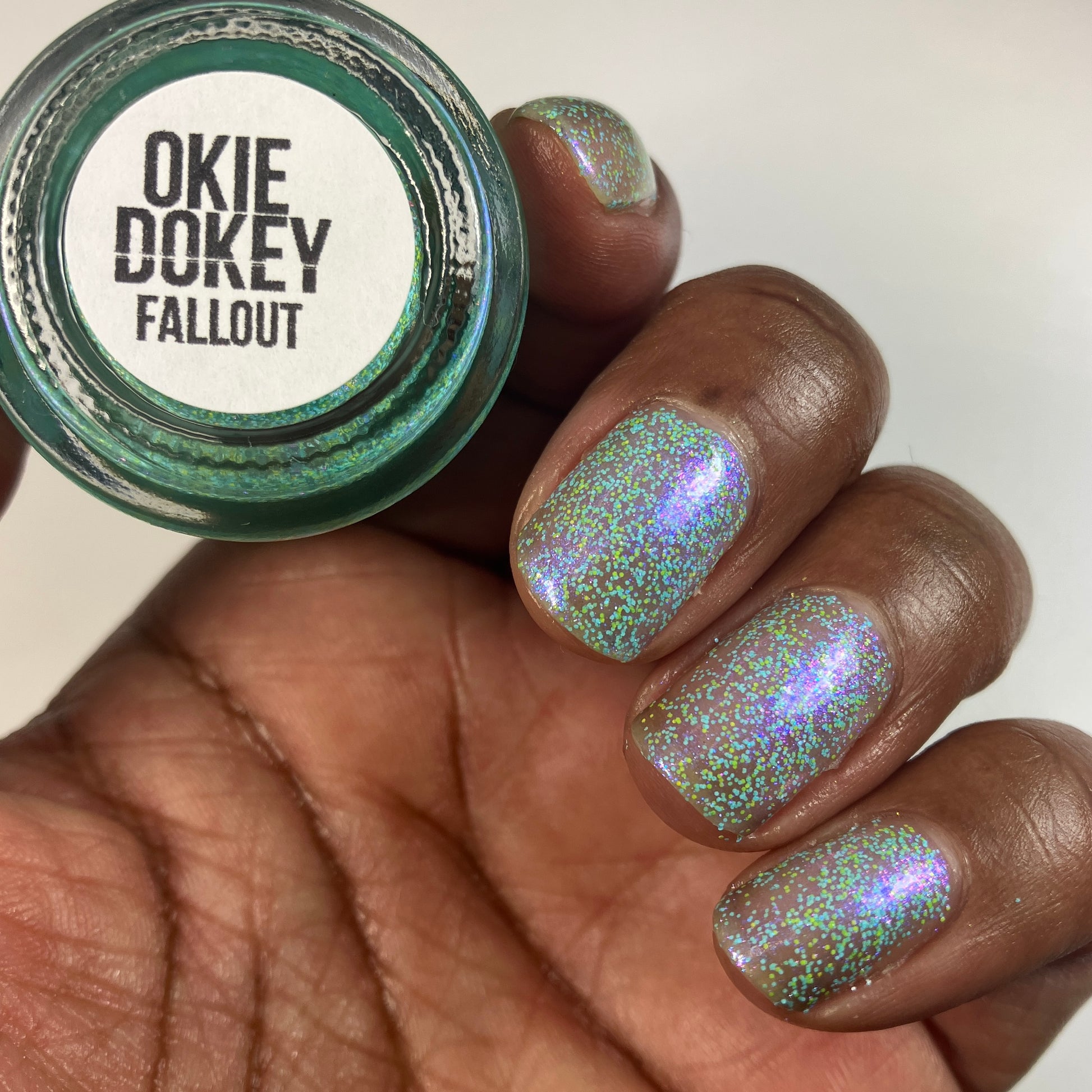 Okie Dokey - sheer blue candy shimmer shifting blue/purple/pink with matte yellow and blue hexes