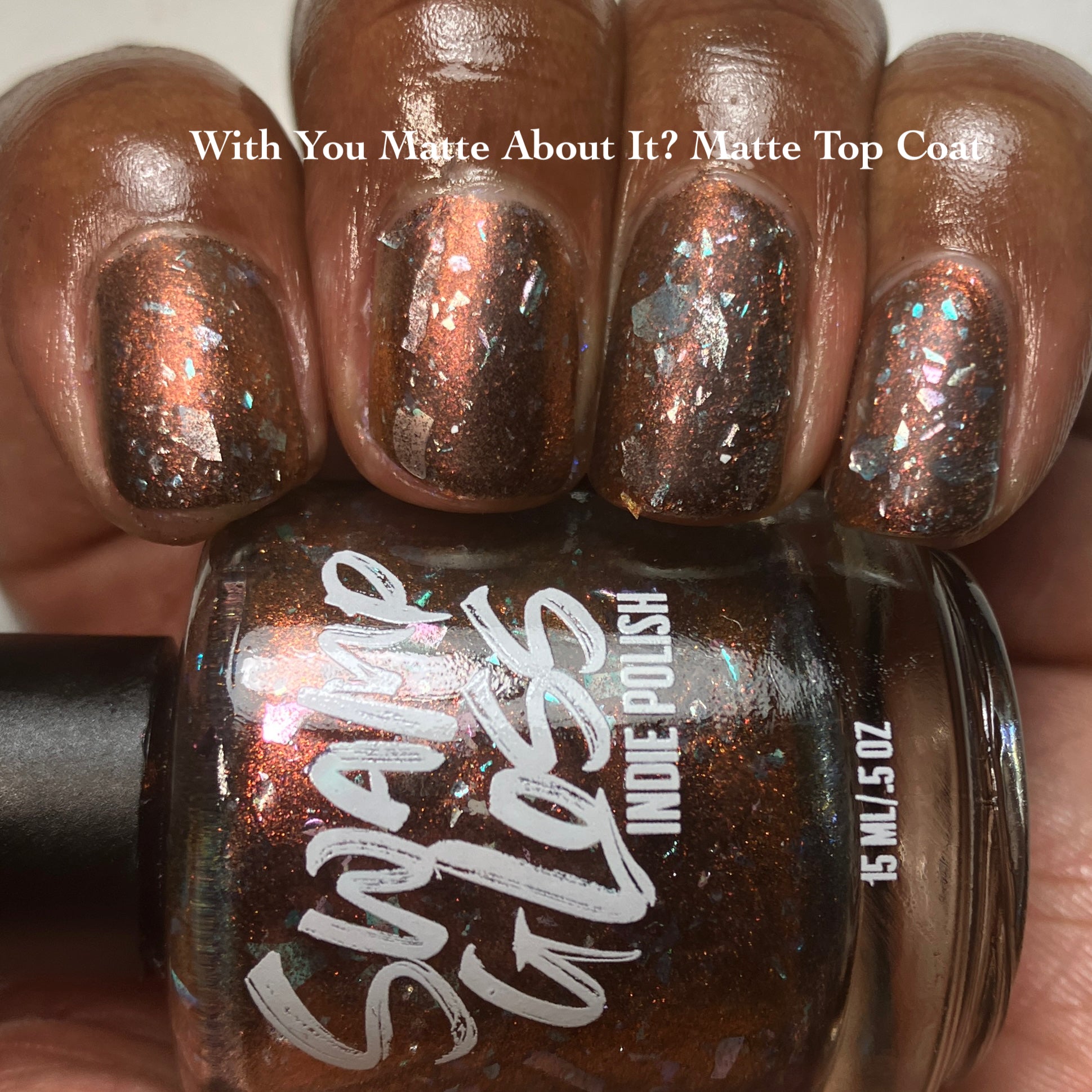 Matte Top Coat: Ethyl Acetate, Butyl Acetate, SD Alcohol 40-B, Cellulose Acetate Butyrate, Acrylates Copolymer, Silica Silylate, Hydrated Silica & Polyethylene, Trimethyl Pentanyl Diisobutyrate, Acetyl Tributyl Citrate, Etocrylene.