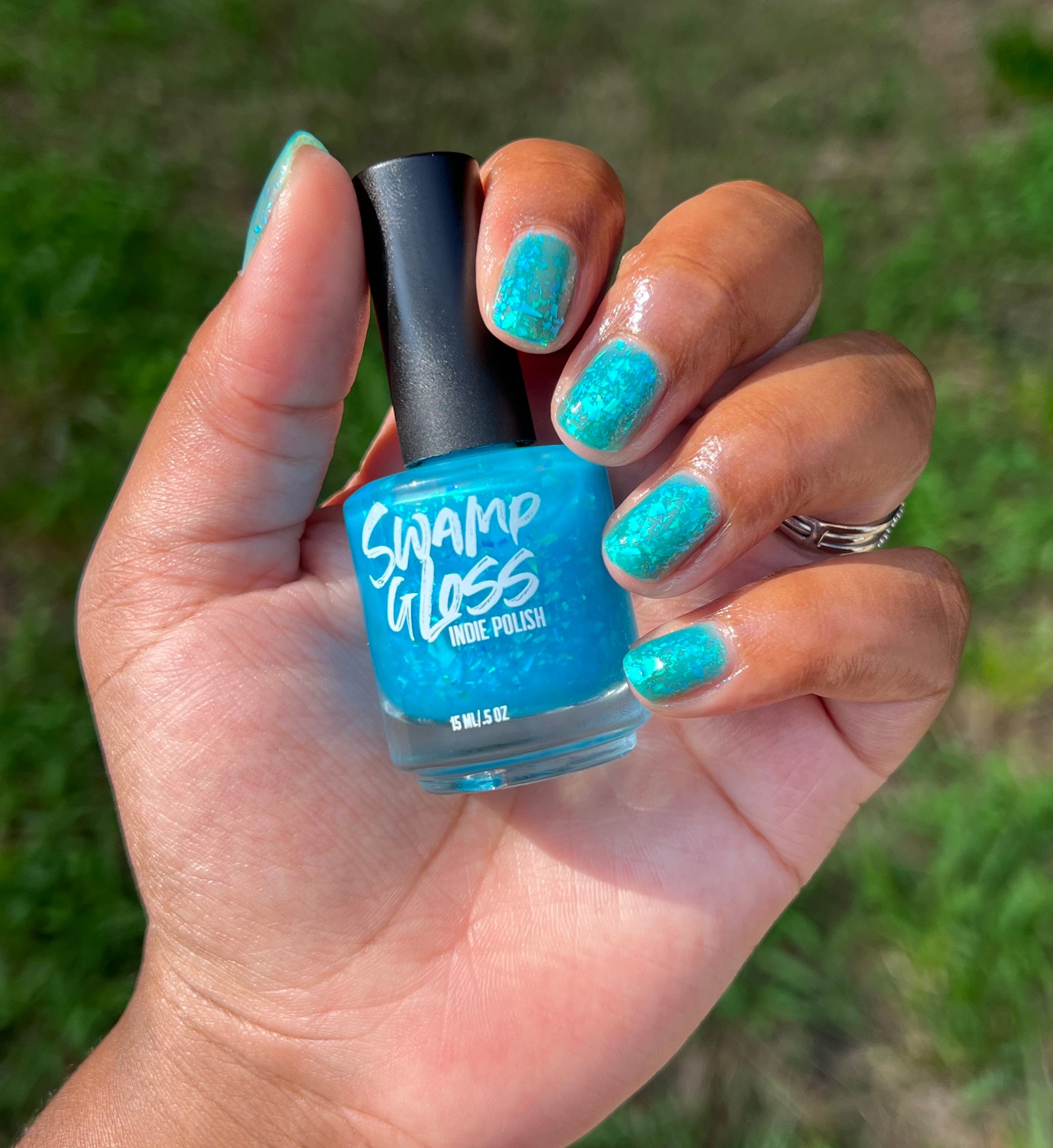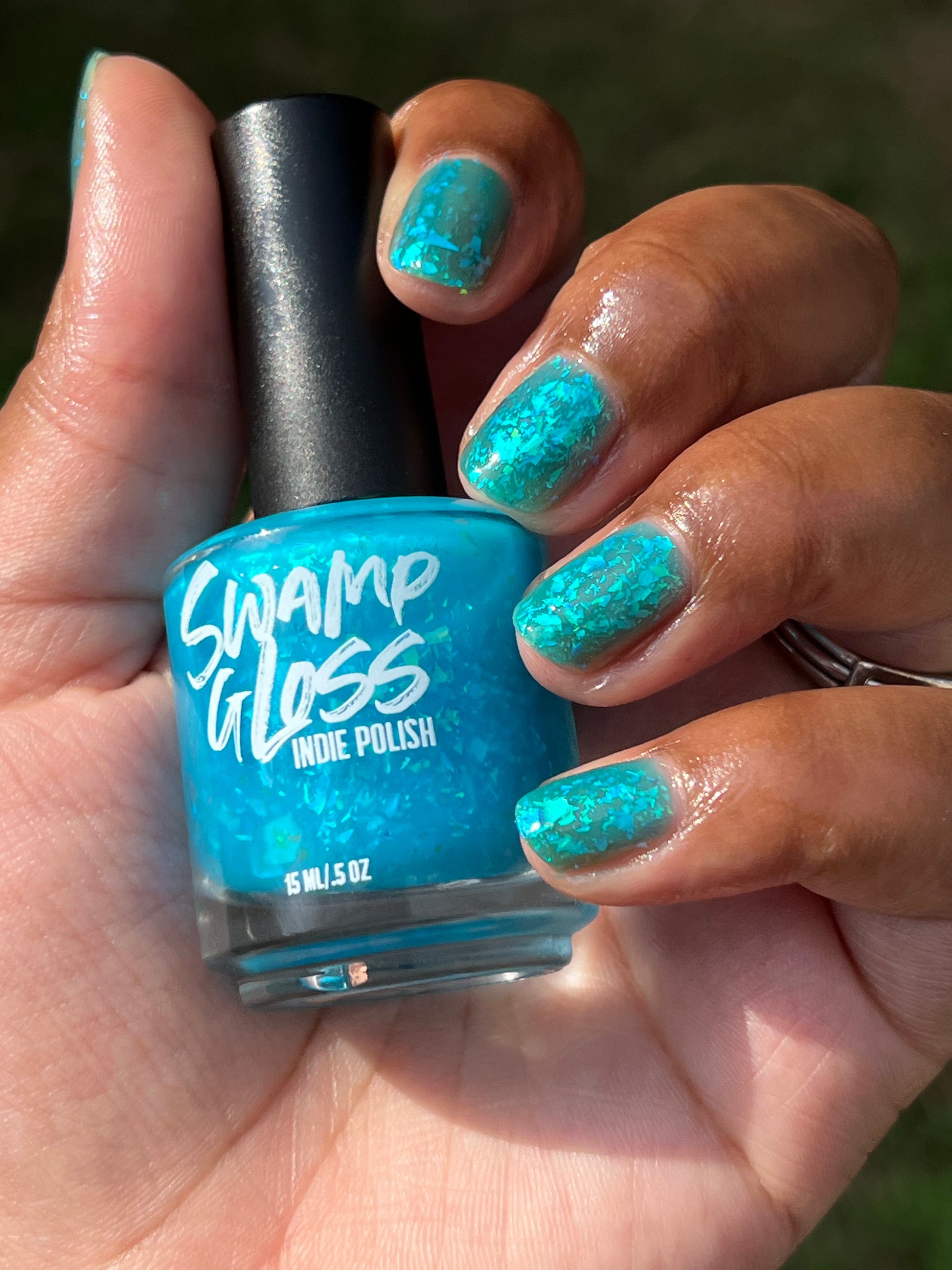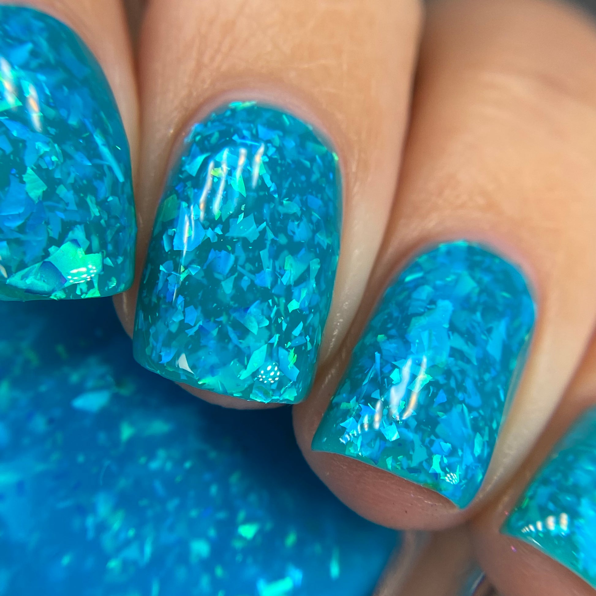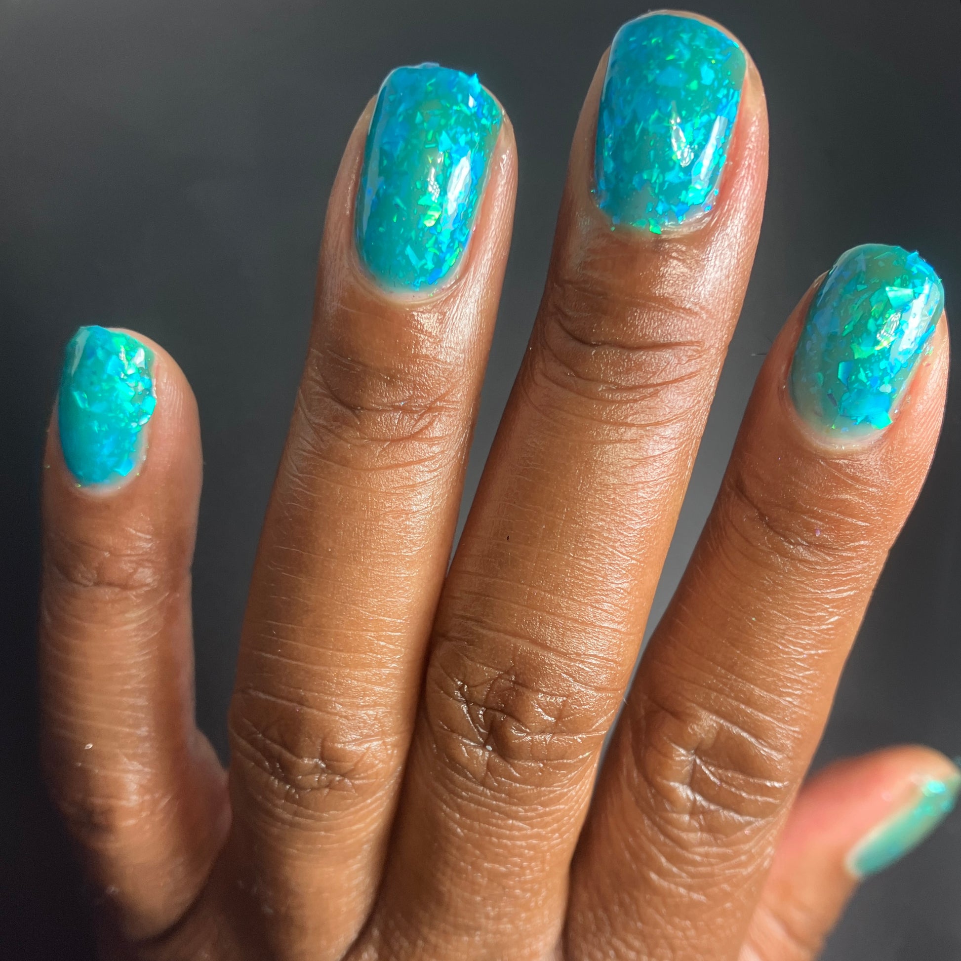 That’s Just Love - a bright cyan jelly with green, teal, blue shifting flakes
