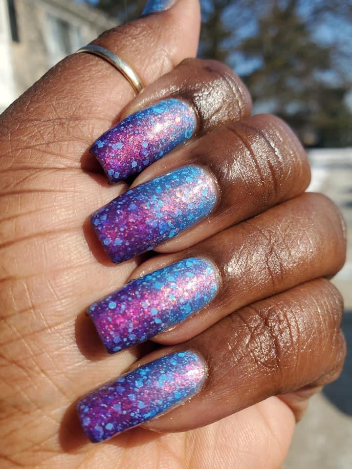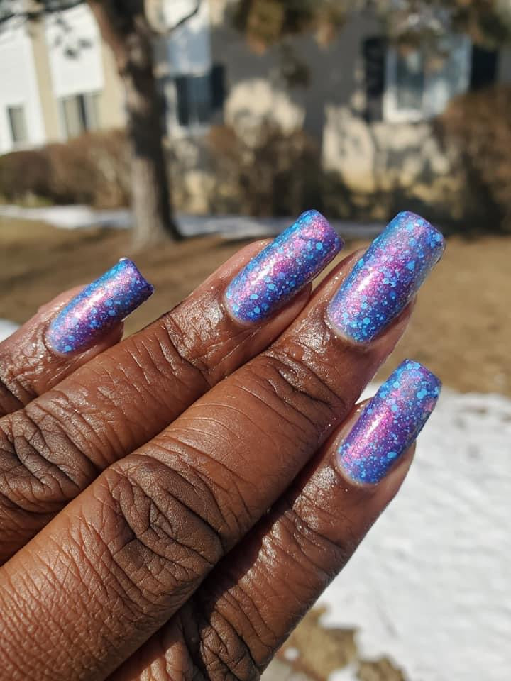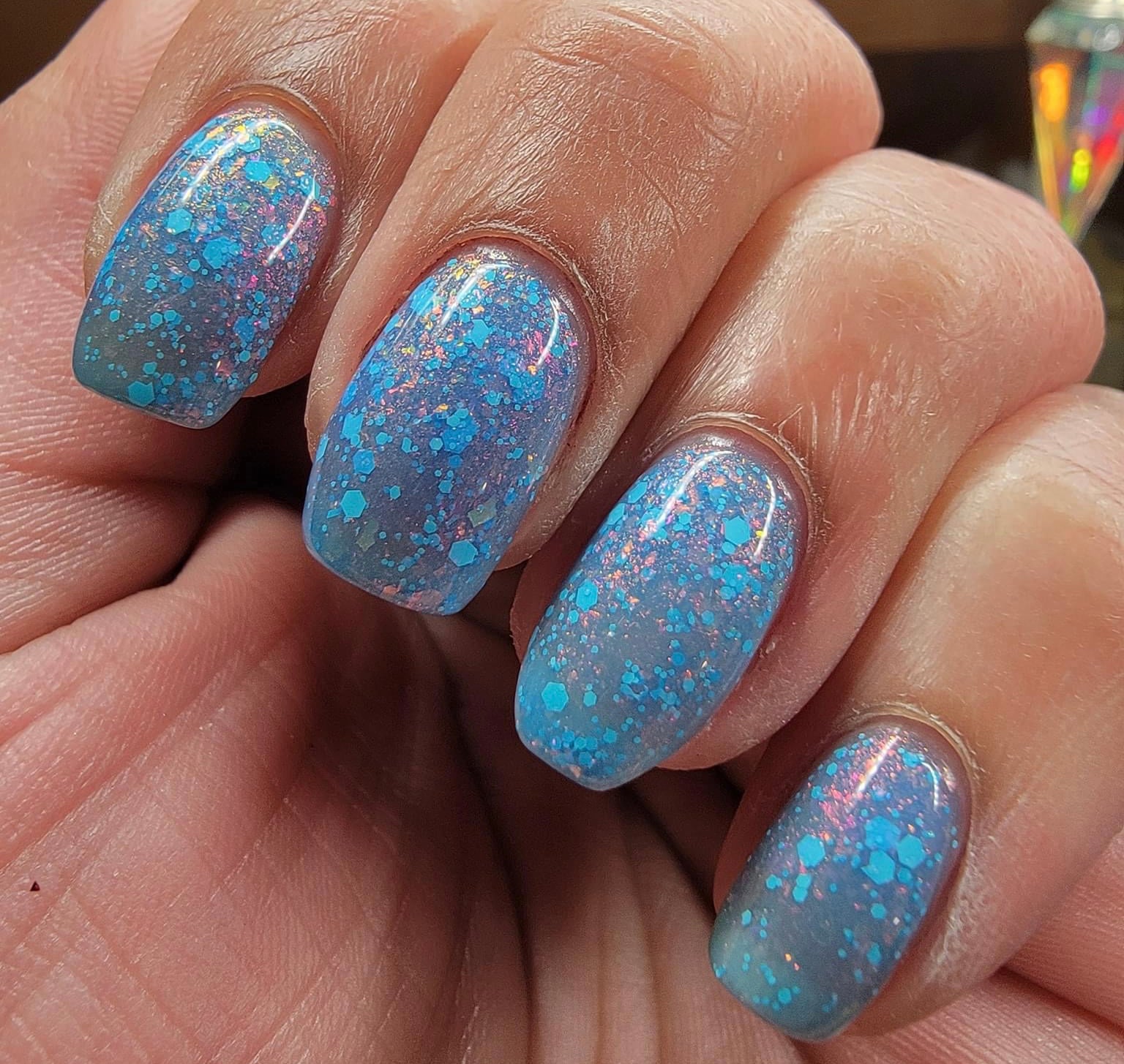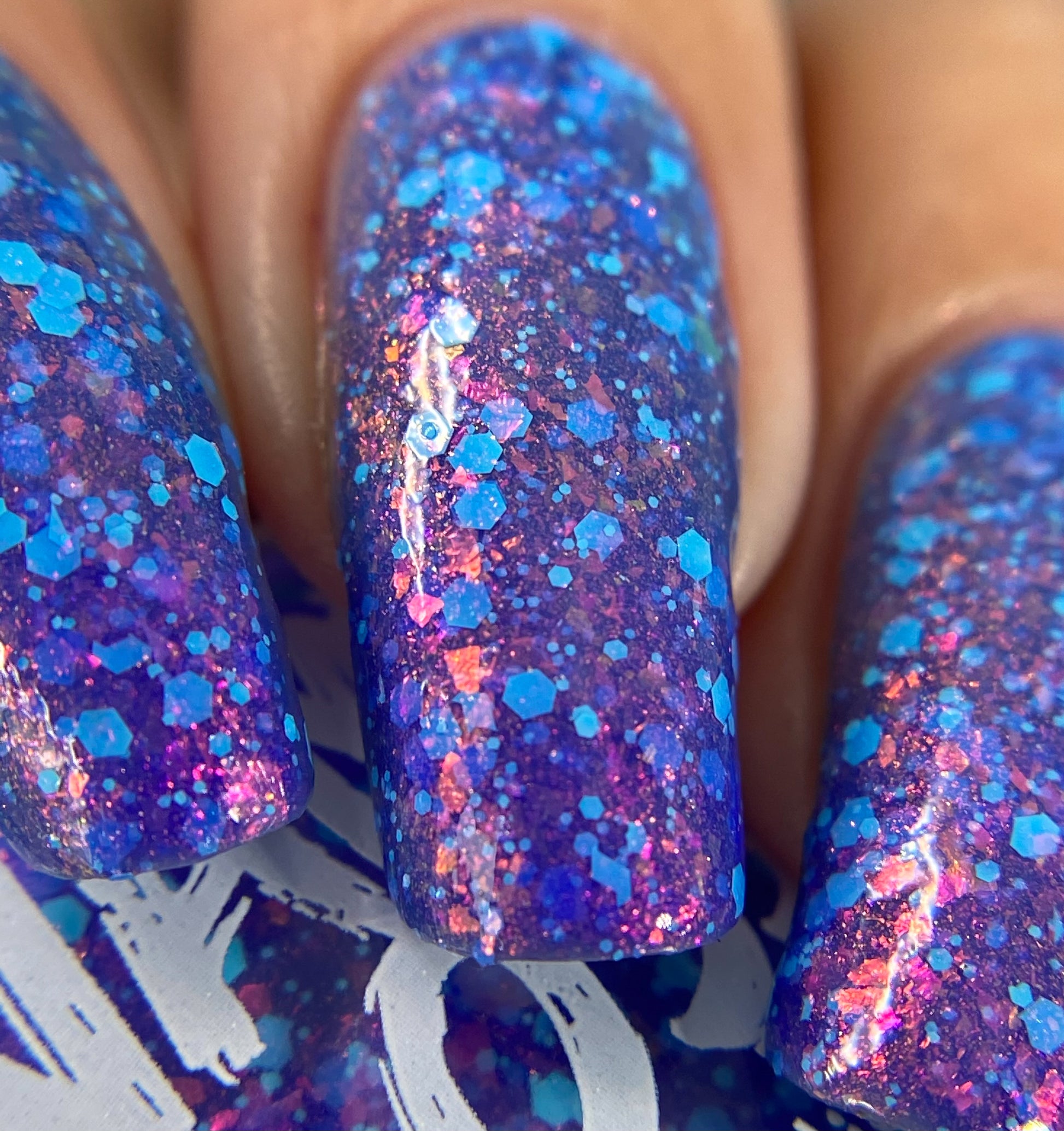 Weapon of choice - a purple/blue thermal jelly with shifting shimmer, iridescent flakes and matte hexes